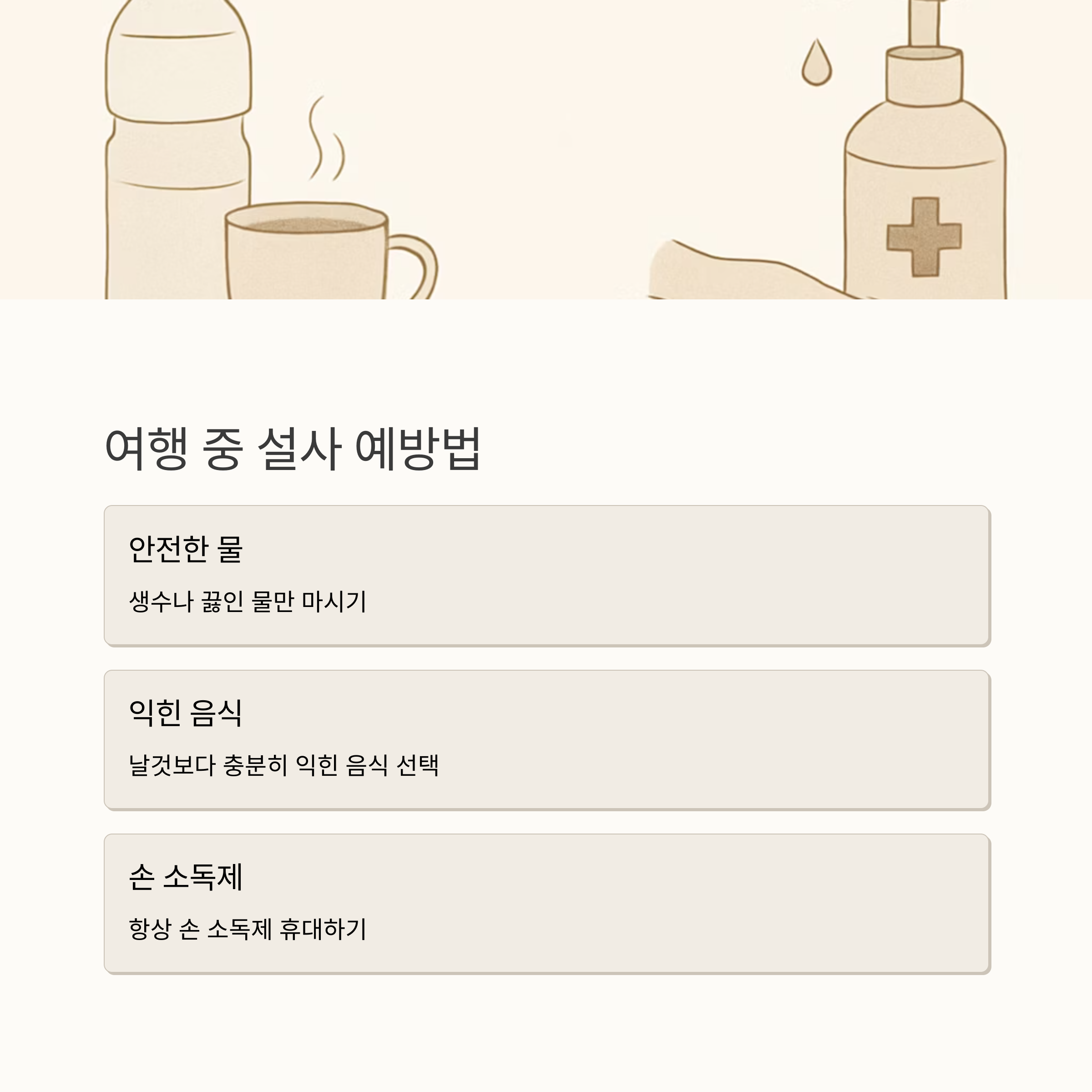 여행중 설사예방, 여행용 응급키트, 장회복식단