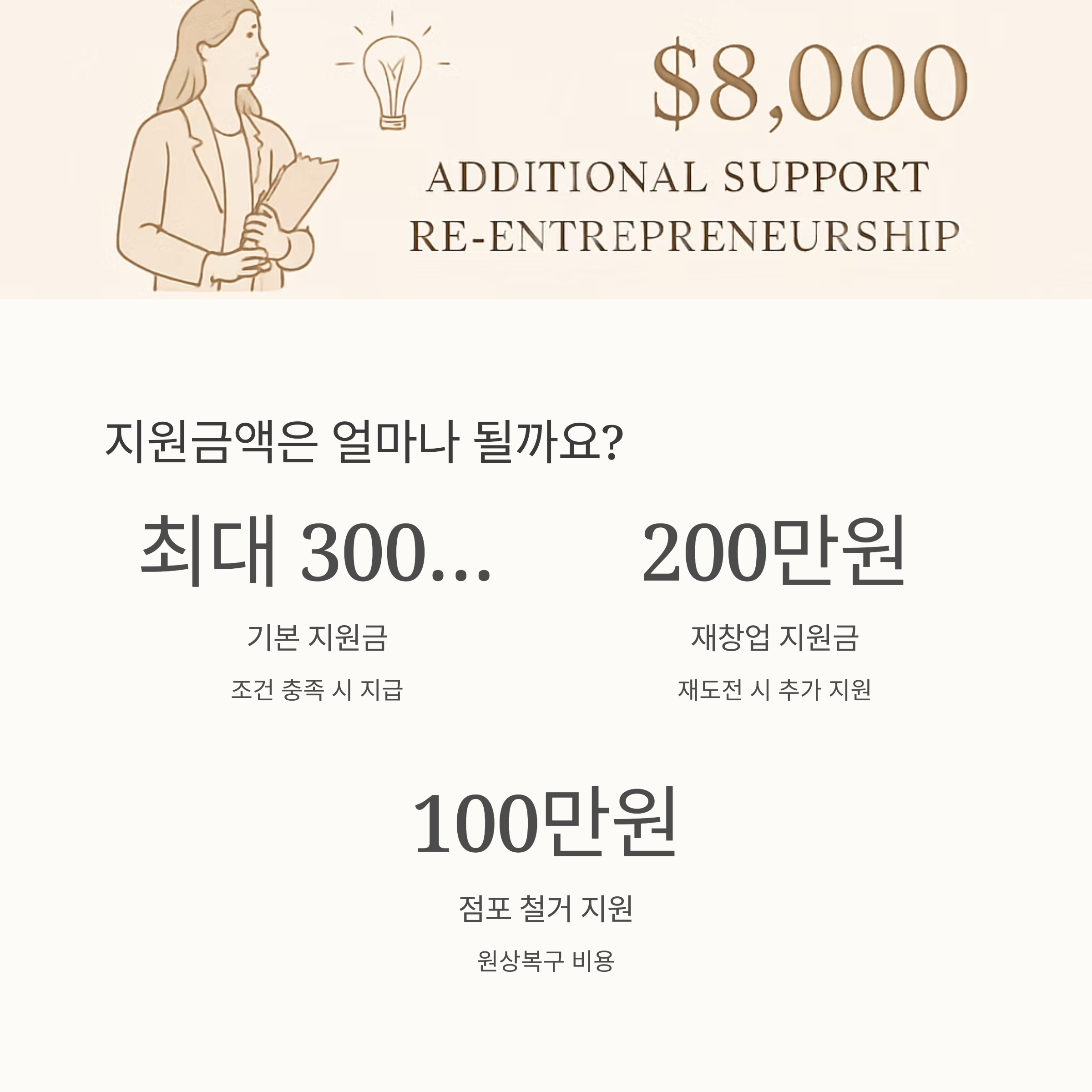 폐업 신고가 완료된 소상공인이라면, 조건 충족 시 최대 300만원까지 지원금을 받을 수 있으며, 단순 현금 지원뿐 아니라 재창업이나 취업 전환을 위한 맞춤형 지원도 제공하고 있어요.