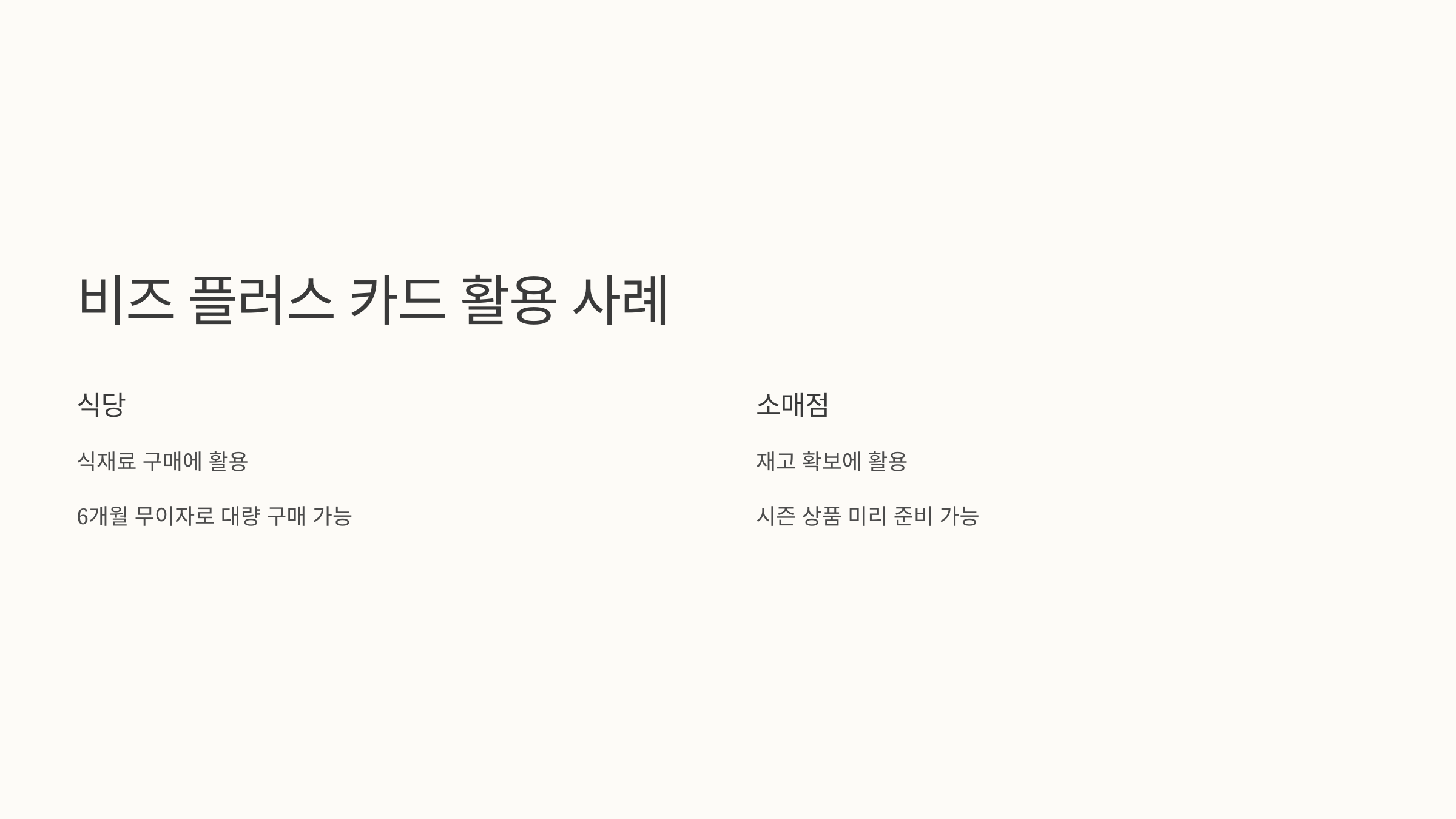 3. 운영 자금 걱정 뚝! 비즈 플러스 카드 발급
