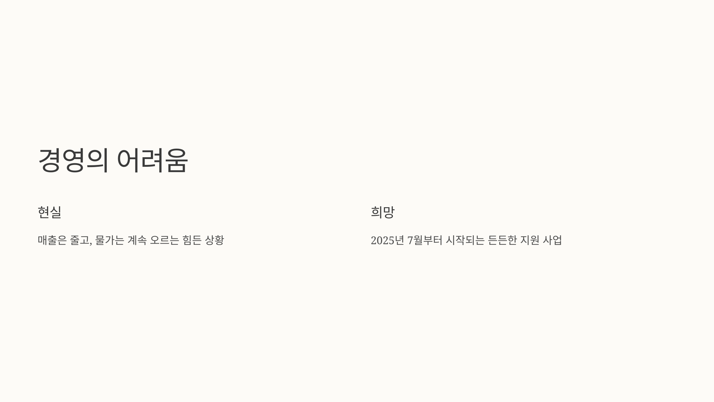 요즘 경기가 어려워서 매출은 줄고, 물가는 계속 오르고… 정말 힘드시죠? 하지만 걱정 마세요! 2025년 7월부터 소상공인 여러분을 위한 든든한 지원 사업이 시작됩니다.