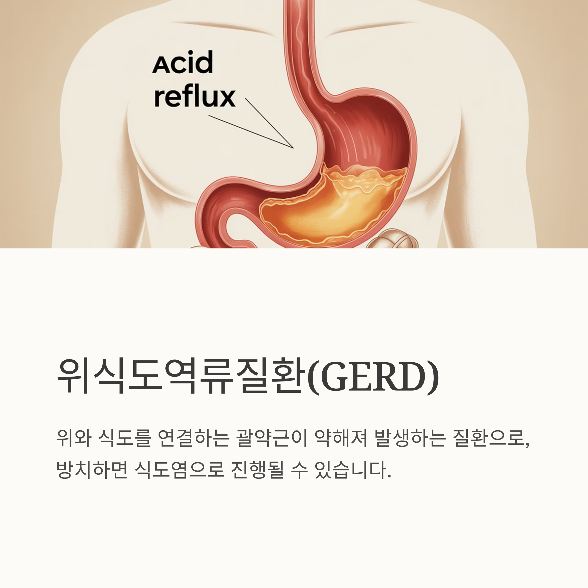 가장 흔한 원인은 바로 위산 역류입니다. 위에서 분비된 강한 산성의 위액이 식도로 역류하면서 식도 점막을 자극하는 거죠. 마치 뜨거운 물을 식도에 붓는 것과 같은 느낌이라고 생각하면 이해가 쉽습니다. 이런 위산 역류의 주범으로는 위식도역류질환(GERD)을 꼽을 수 있어요. 이 질환은 위와 식도를 연결하는 괄약근이 약해지거나 제 기능을 못해서 발생하는데, 만약 방치하면 식도염으로 이어질 수도 있으니 주의해야 합니다.