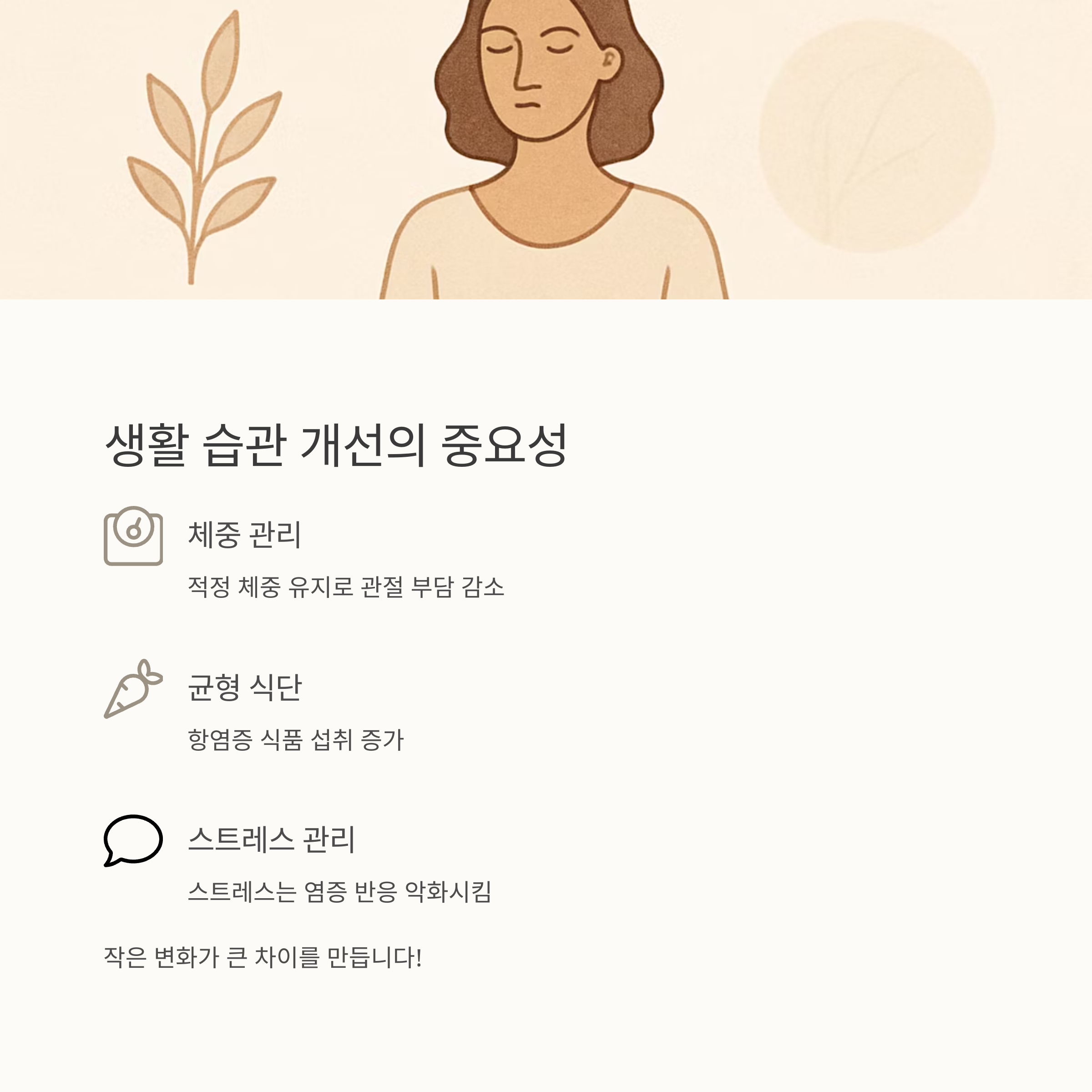 손가락 퇴행성 관절염, 쉽지 않은 싸움이지만 절대 혼자가 아니라는 사실을 기억해주세요. 이 글이 여러분의 작은 희망이 되길 바랍니다. 제 경험과 정보들이 여러분의 손가락 건강 회복에 조금이나마 도움이 되길 바라며, 항상 건강하고 행복하시길 응원합니다. 앞으로도 꾸준한 관리와 긍정적인 마음으로 건강한 삶을 유지하시길 바랍니다. 함께 극복해나가요!