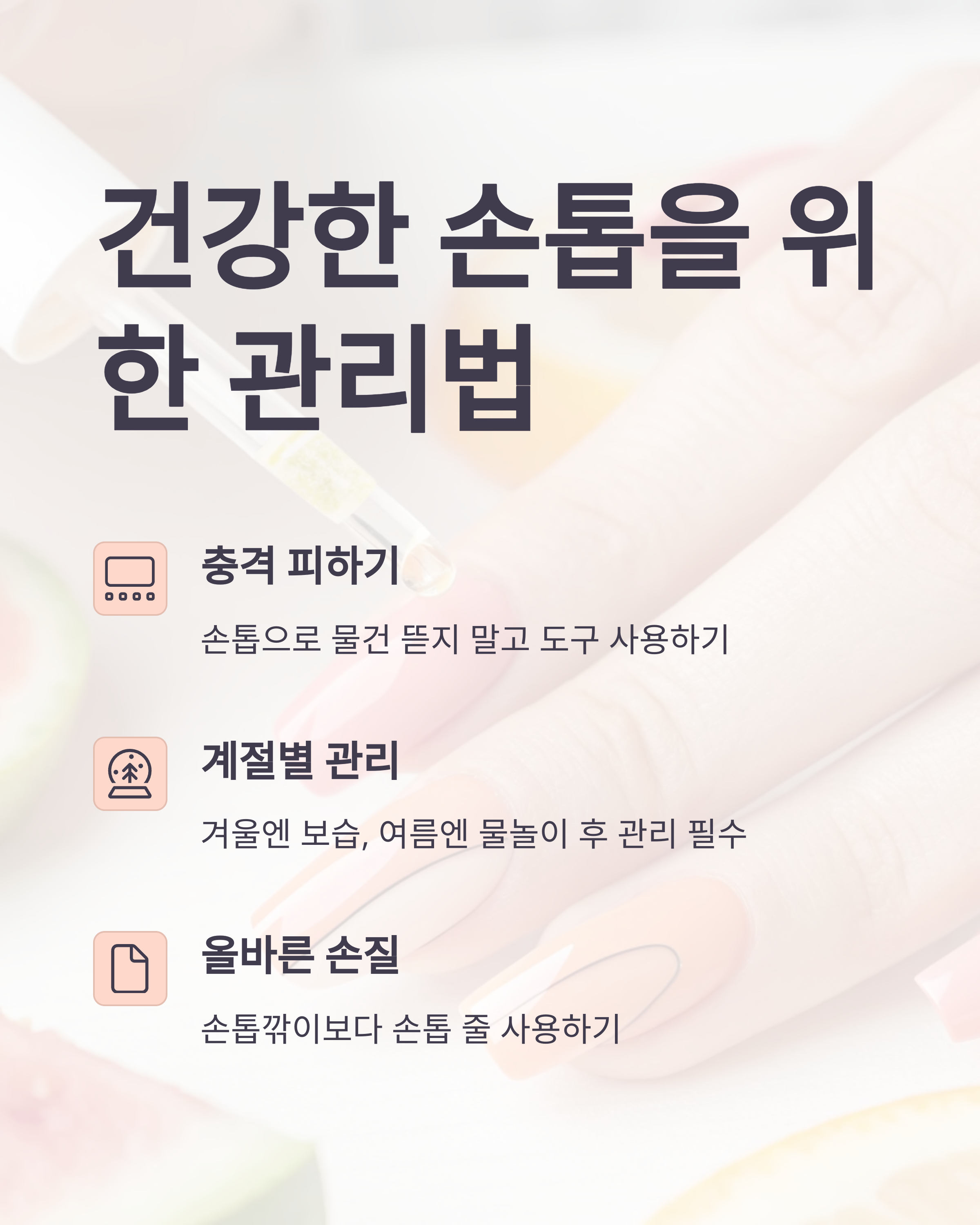 계절 변화에 맞춰 손톱을 관리하면 건강하고 튼튼한 손톱을 유지하는 데 도움이 될 거예요.