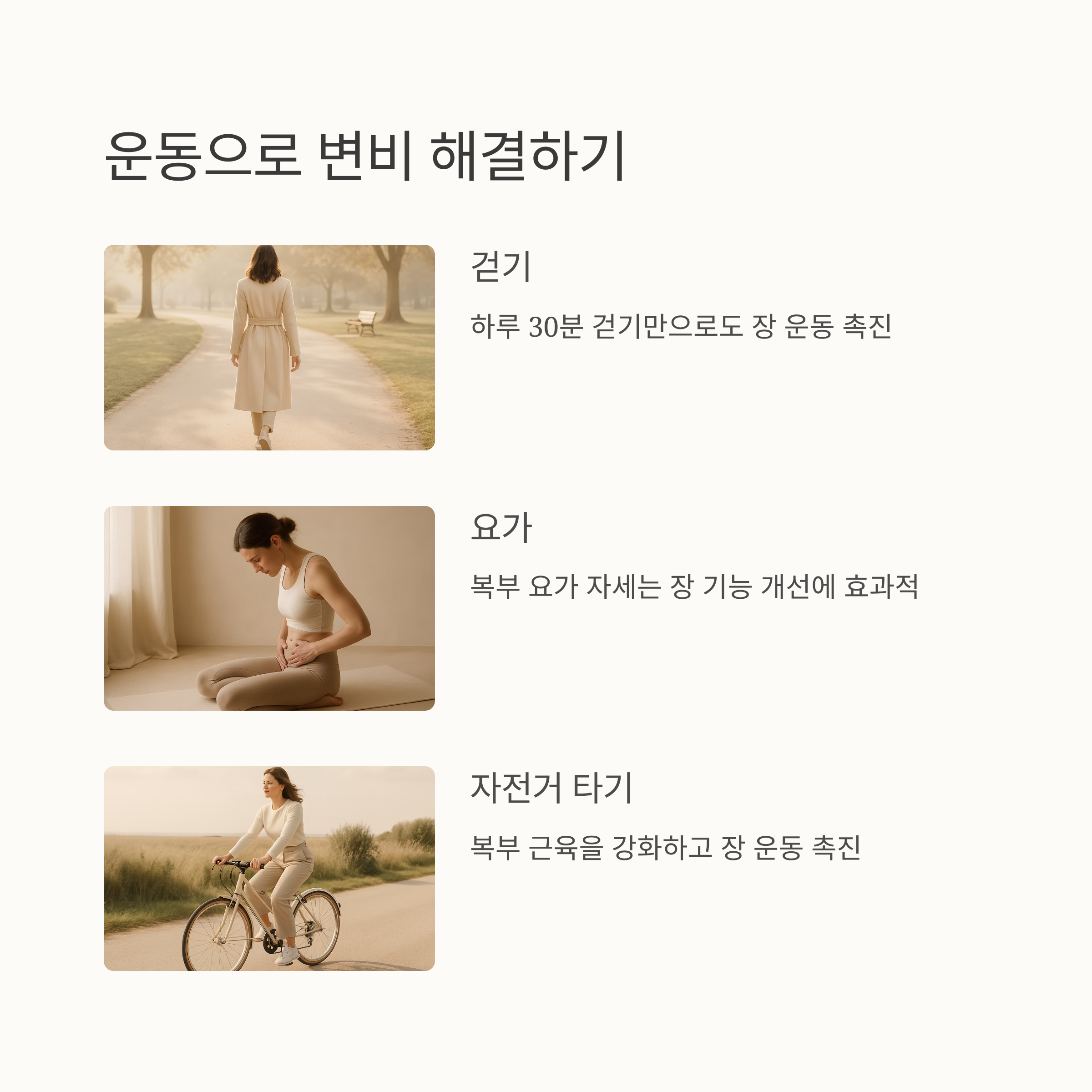 운동, 발효식품, 변비에 좋은 차