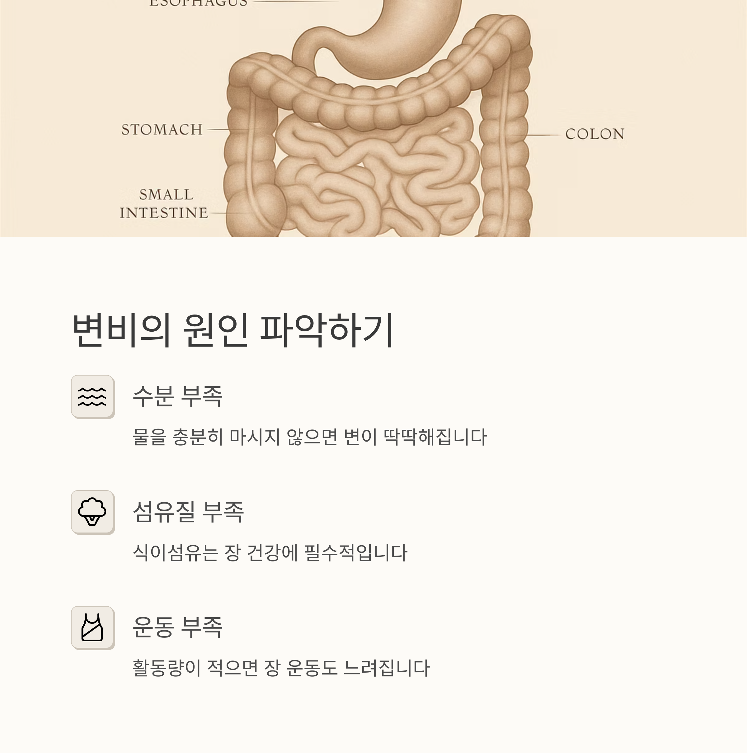 오늘은 제가 직접 경험하고 효과를 본 방법들을 여러분과 공유하려고 합니다. 변비 때문에 힘든 여러분에게 조금이나마 도움이 되었으면 하는 바람입니다. 일단 변비의 원인을 파악하는 게 중요해요.