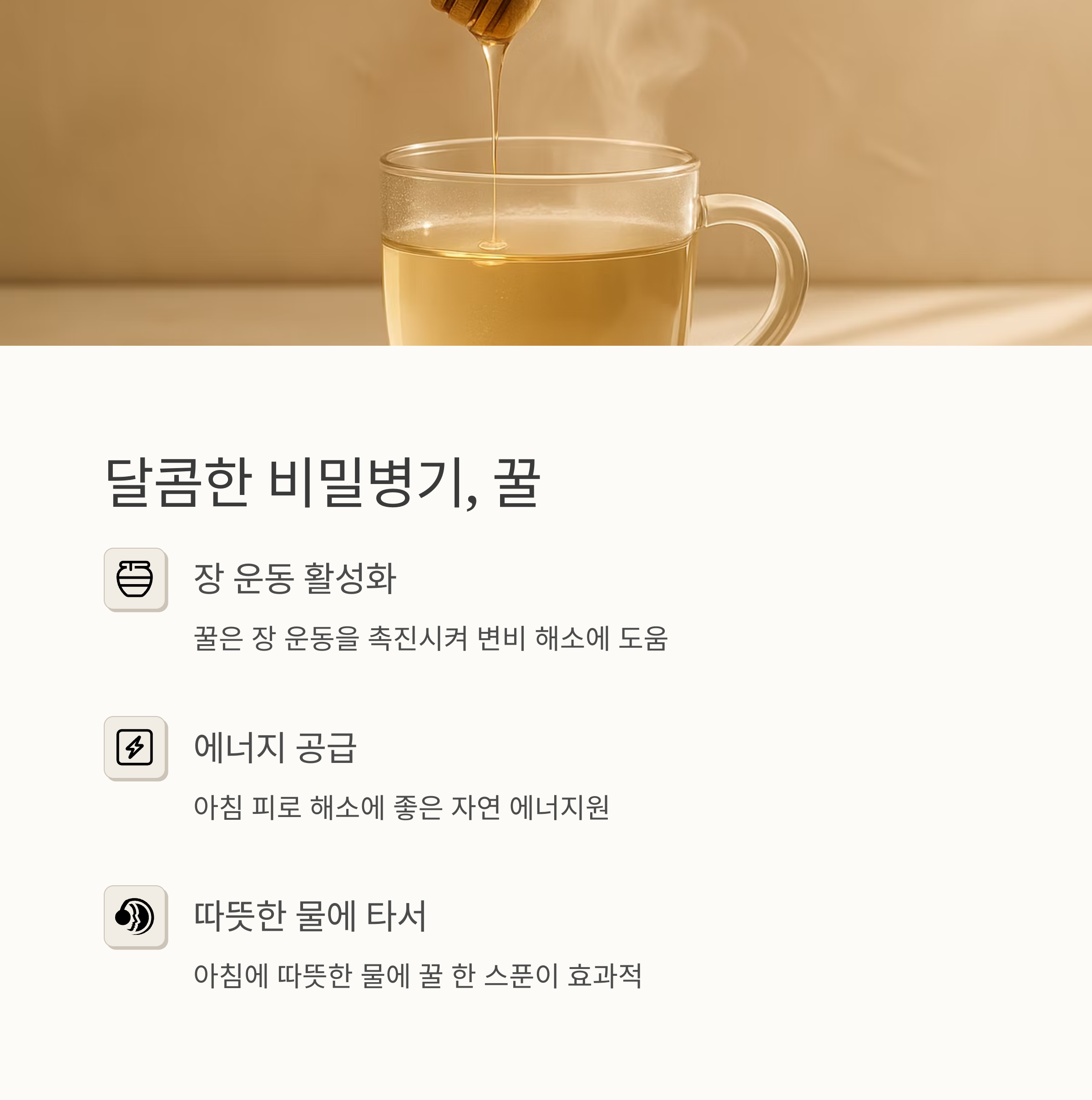 꿀은 단순히 맛있는 간식이 아니랍니다. 장 운동을 활발하게 해서 변비 해소에도 도움을 줄 수 있다고 해요. 저는 아침에 일어나서 따뜻한 물에 꿀 한 스푼을 타서 마시는 습관을 들였어요. 처음에는 꿀의 단맛이 조금 부담스러웠지만, 꾸준히 마시다 보니 어느새 몸이 좋아지는게 느껴지더라고요.