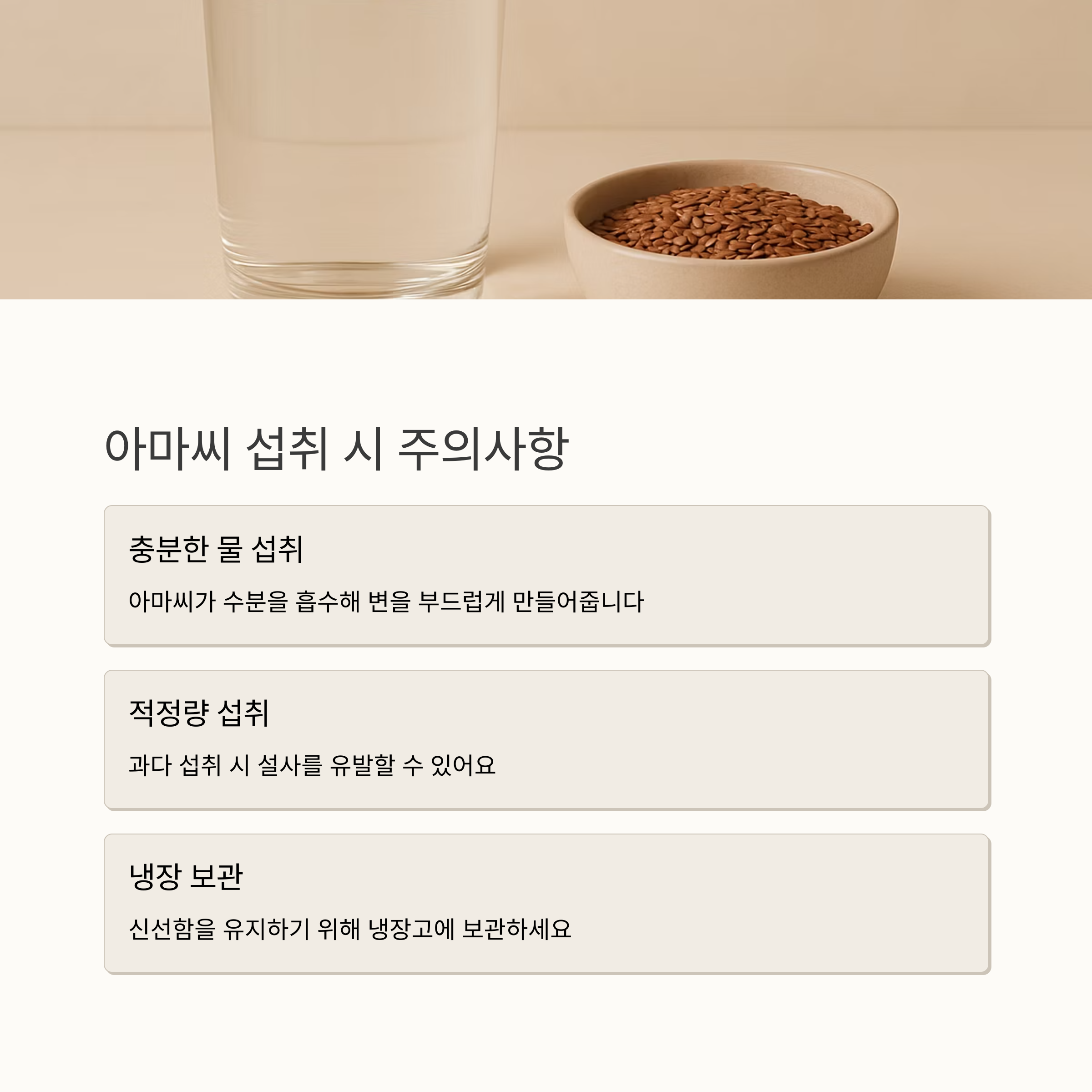 아마씨가 수분을 흡수해서 변을 부드럽게 만들어주는 역할을 하기 때문이죠. 너무 많이 먹으면 오히려 설사를 할 수도 있으니, 처음에는 소량으로 시작해서 몸에 맞는 양을 찾는 것이 좋아요. 저는 처음에는 한 스푼으로 시작해서 점차 양을 늘렸어요. 아마씨는 냉장 보관하는 것이 좋다고 하네요.