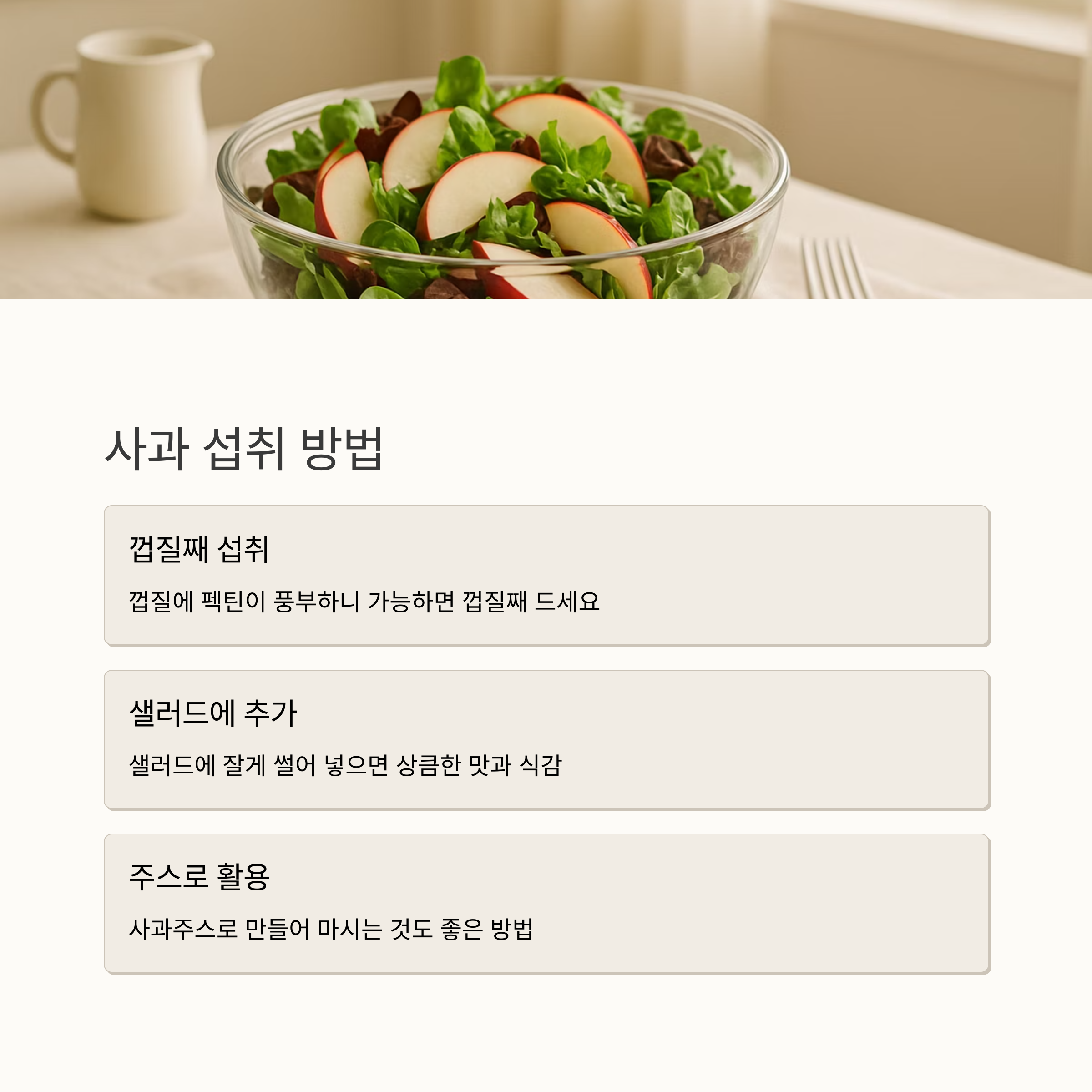 처음엔 껍질이 좀 질겨서 힘들었지만, 이제는 껍질째 먹는게 더 맛있어요. 사과의 펙틴은 장내 유익균을 증식시켜주고 유해 물질을 배출하는데 도움을 준다고 하니, 정말 몸에 좋은 음식인 것 같아요.