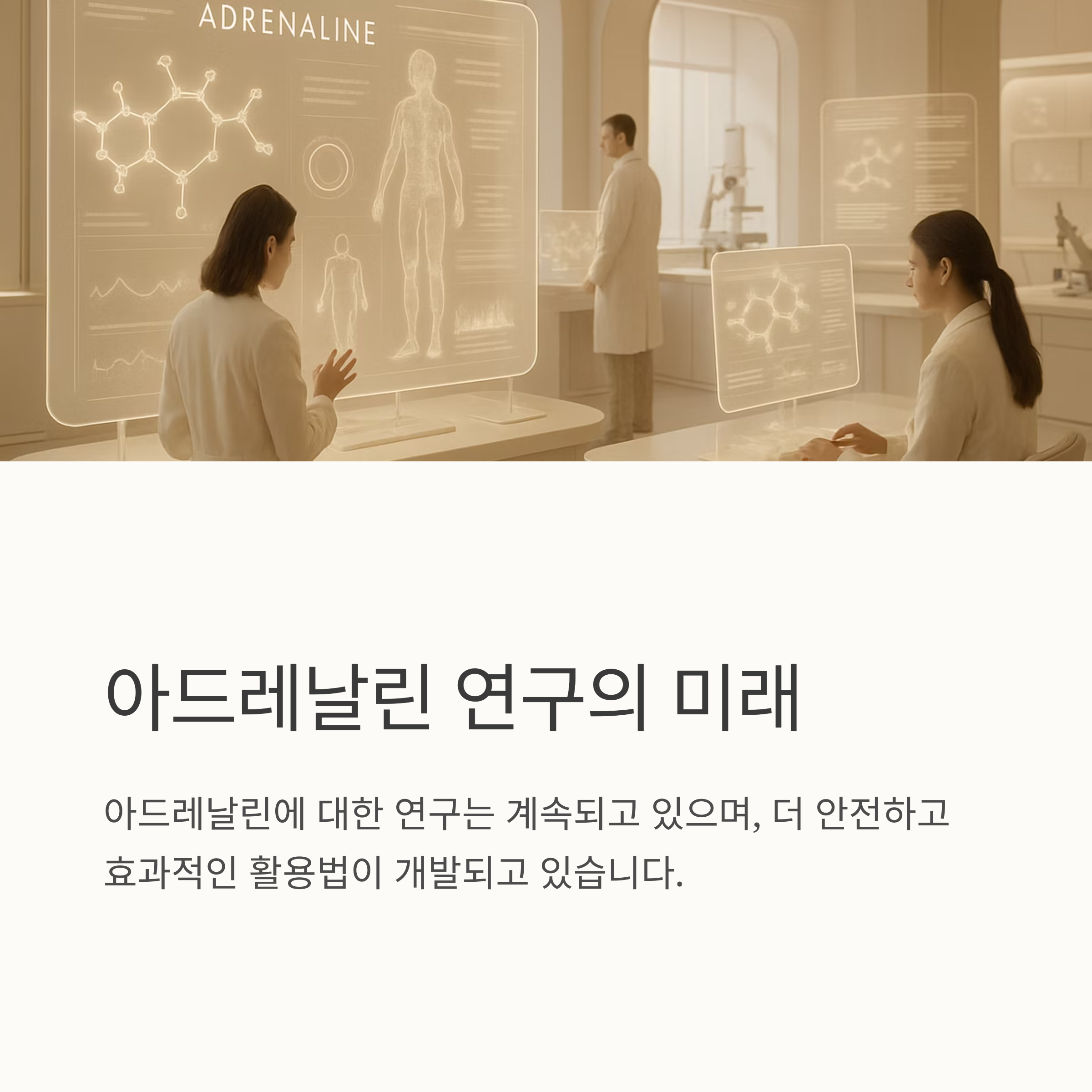 아드레날린 이란 우리 몸의 놀라운 능력을 보여주는 생생한 증거입니다. 발견 과정부터 의학적 활용까지, 아드레날린은 우리 삶 곳곳에 영향을 미치고 있습니다. 앞으로도 아드레날린에 대한 연구가 계속되어 더욱 안전하고 효과적인 활용법이 개발되기를 기대합니다. 그리고 건강한 생활 습관을 통해 몸속 슈퍼히어로 아드레날린을 현명하게 활용하여 더욱 건강하고 행복한 삶을 살아가도록 합시다.