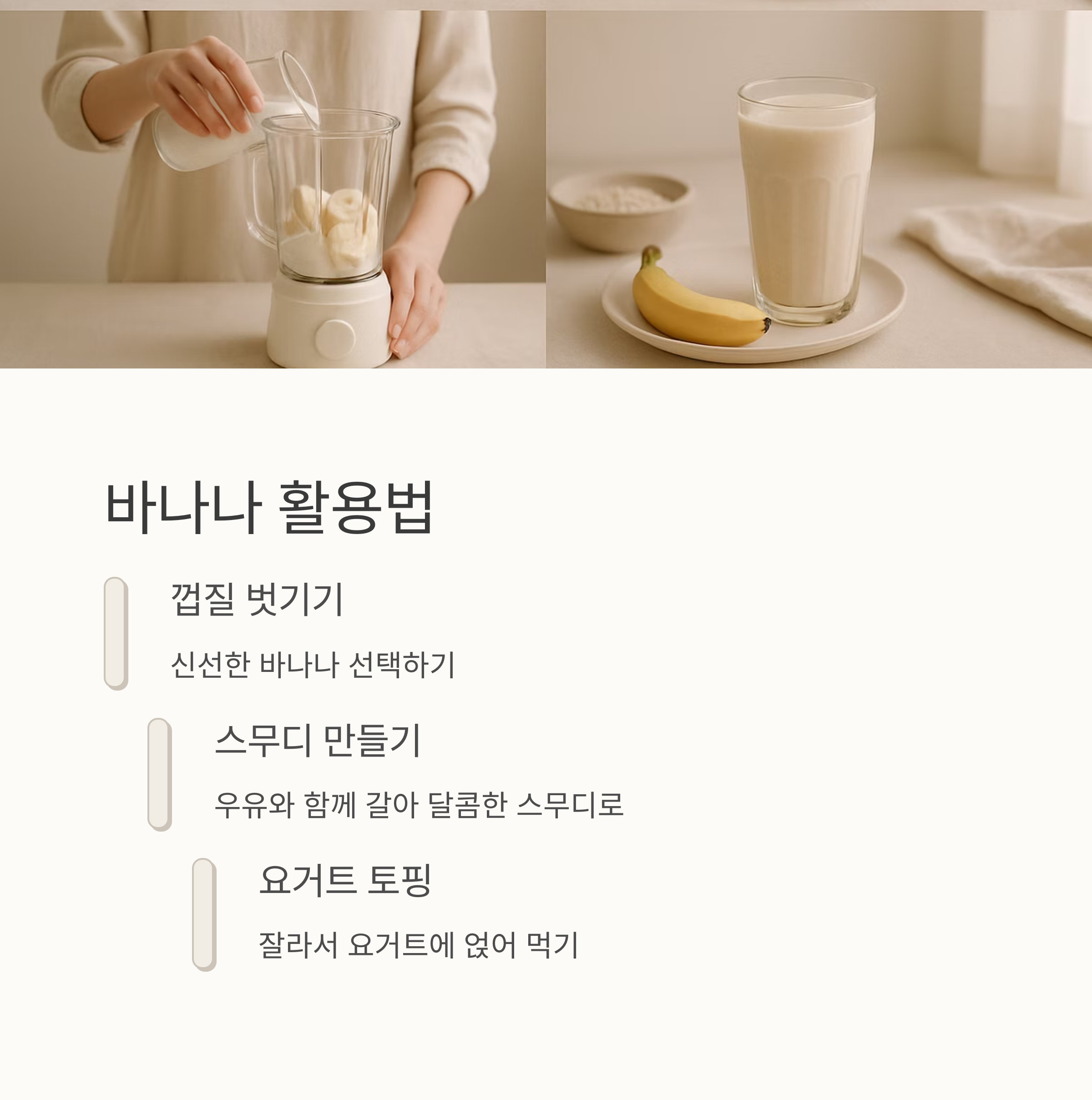 아침에 기분 좋게 일어나서 뭘 먹을까 고민이시라면, 노란 바나나 하나가 정답일 수 있어요. 달콤한 바나나는 칼륨이 풍부해서 혈압 조절에도 도움이 되고, 섬유질 덕분에 아침부터 든든한 포만감을 느낄 수 있거든요. 잠에서 깨어나는 아침, 바나나의 부드러운 식감과 달콤함은 기분까지 좋아지게 만들어줄 거예요. 저는 개인적으로 우유랑 같이 갈아서 스무디로 만들어 먹는 것을 좋아하는데, 진짜 맛있어요!