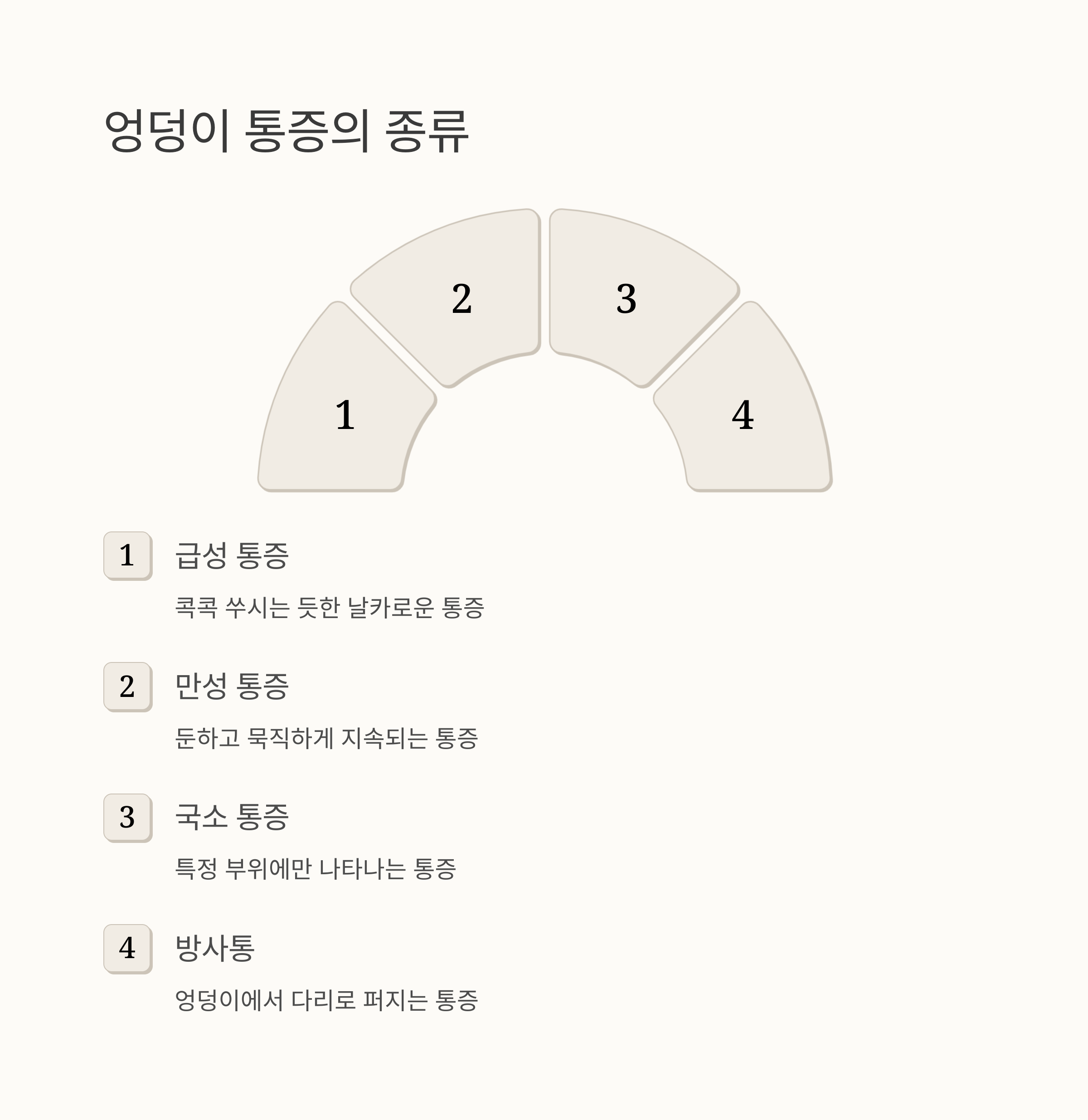 만약 엉덩이 깊숙한 곳에서부터 오는 쑤시는 듯한 통증이라면, 좌골신경통을 의심해볼 수 있어요. 좌골신경은 허리에서 시작해서 엉덩이를 지나 다리까지 내려오는 신경인데, 이 신경이 눌리면 엉덩이와 다리에 심한 통증이 나타나죠. 반면, 엉덩이 근육 자체의 문제로 인한 통증은 뻐근하거나 뭉치는 느낌이 주로 나타나요.