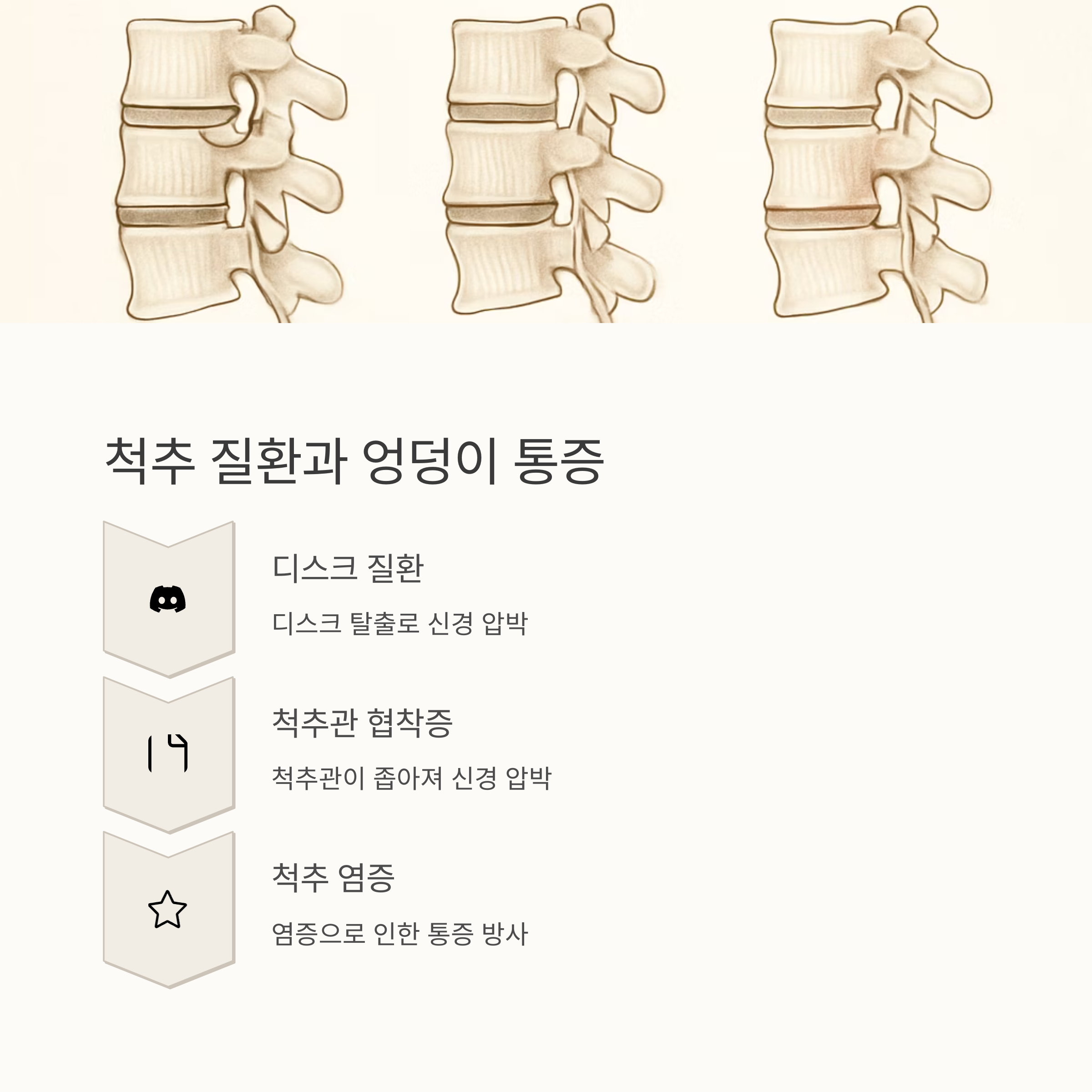 그리고 척추 문제도 무시할 수 없어요. 척추관 협착증이나 디스크 질환 등 척추에 문제가 있으면 엉덩이로 통증이 방사될 수 있답니다. 혹시 평소 엉덩이 통증이 자주 있다면, 자신의 생활 습관을 돌아보고, 필요하다면 병원에 방문하여 정확한 진단을 받는 것이 중요해요.