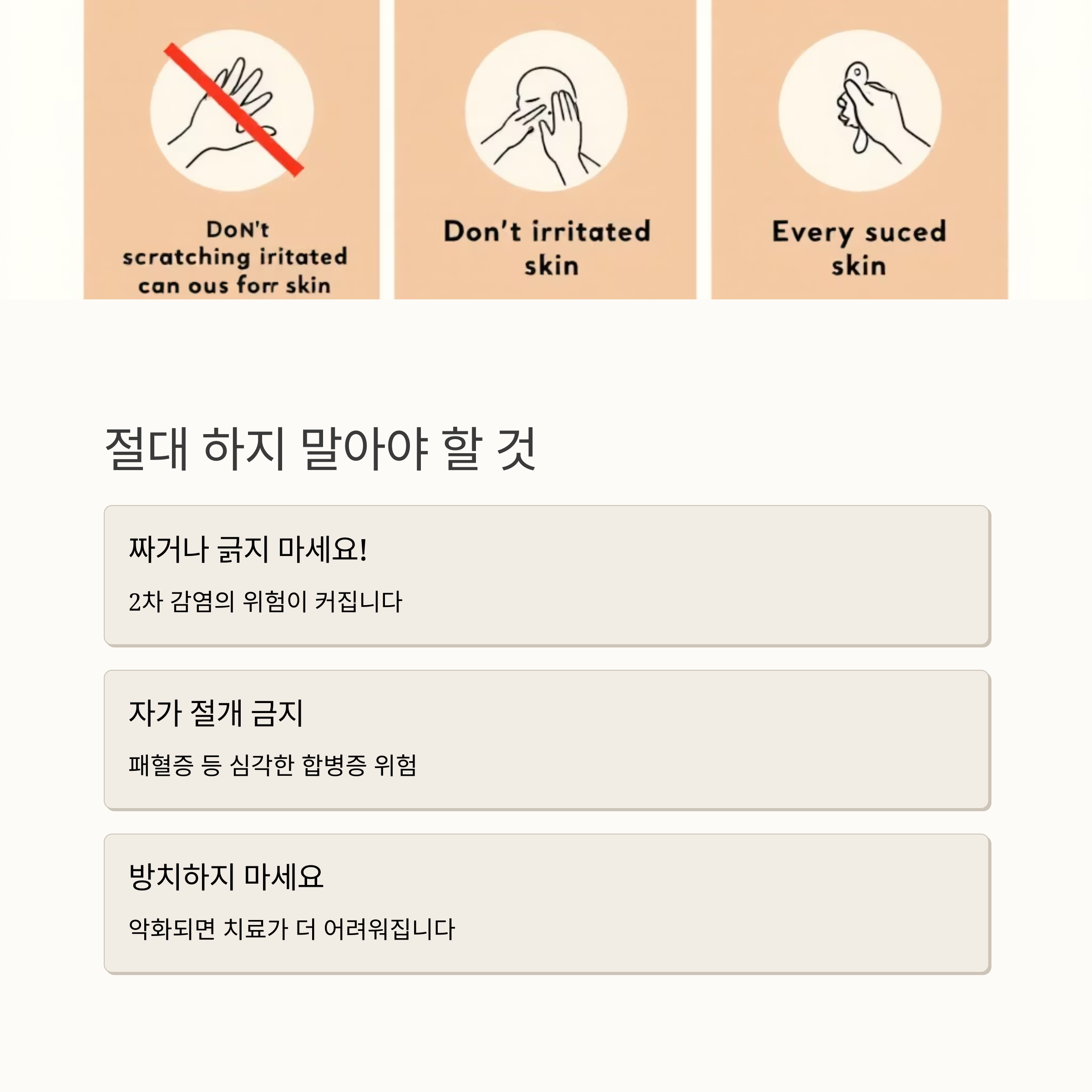 종기가 생겼을 때는 절대 함부로 짜거나 만지지 마세요. 2차 감염을 유발할 수 있고, 심한 경우에는 패혈증으로 이어질 수 도 있기 때문입니다. 항상 청결을 유지하고, 건강한 생활 습관을 유지하며, 증상이 심해지면 즉시 병원을 찾는 것이 중요합니다.