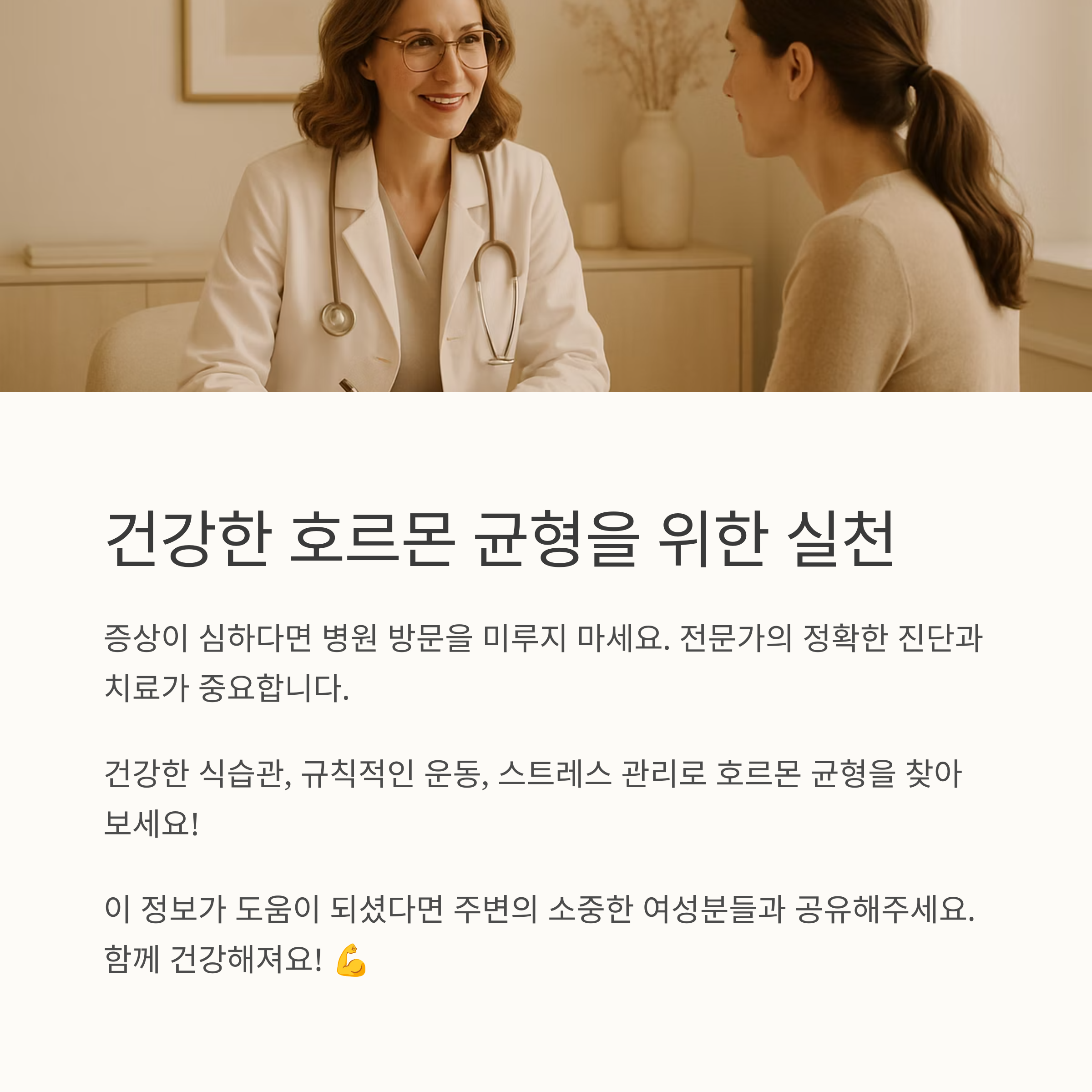 이 글을 통해 여성 호르몬 균형에 대해 조금이나마 이해하는데 도움이 되셨으면 좋겠어요. 하지만 기억하세요. 저는 전문 의료인이 아니며, 이 글은 전문적인 의학적 조언을 대체할 수 없습니다. 궁금한 점이나 걱정되는 부분이 있다면 꼭 전문 의료진과 상담하는 것을 잊지 마세요! 건강한 식습관, 규칙적인 운동, 스트레스 관리, 그리고 충분한 휴식을 통해 건강한 삶을 누리시길 바랍니다!