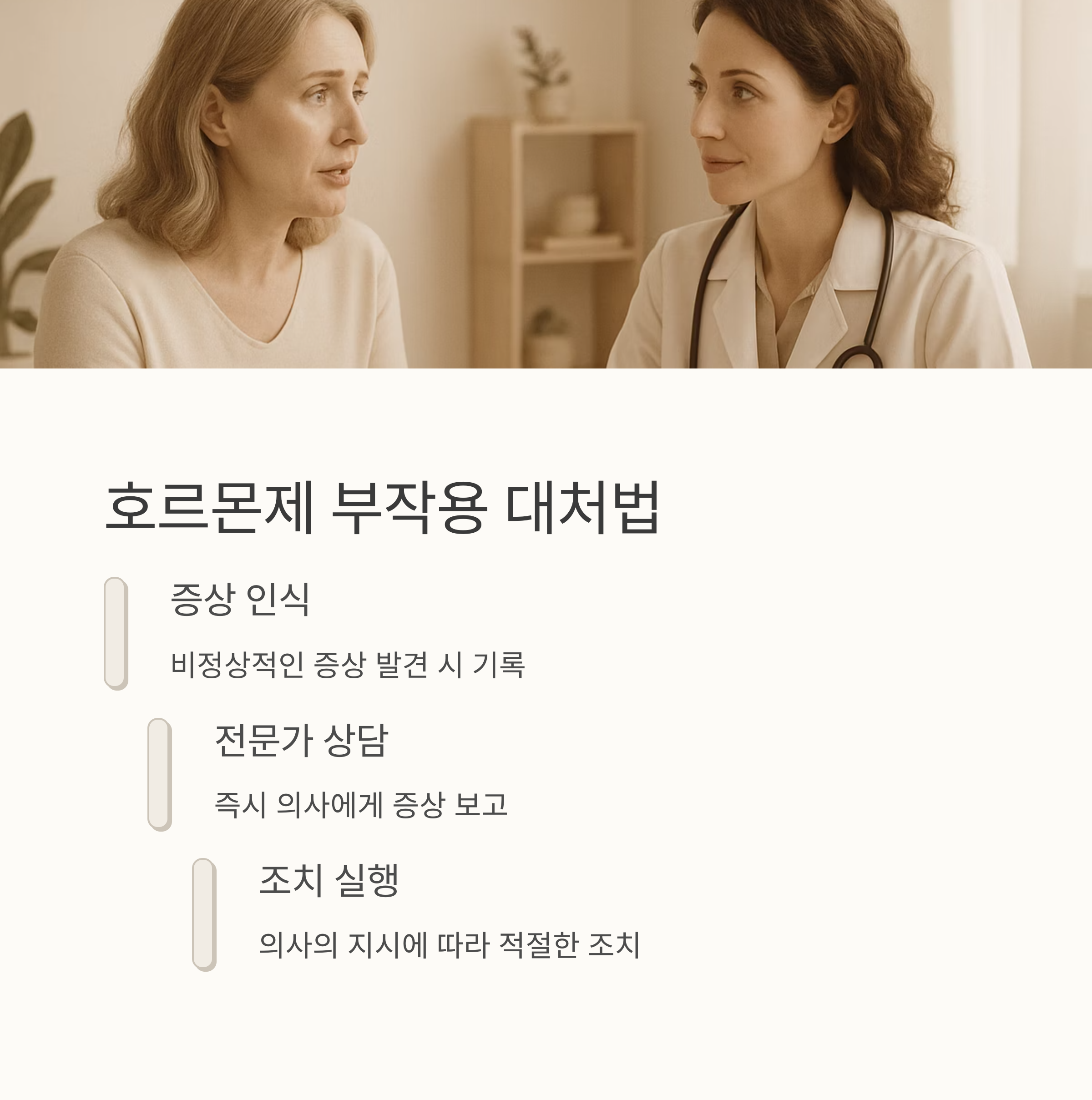 여성호르몬제 복용은 전문가의 지시와 꾸준한 건강 관찰을 통해 안전하게 진행되어야 합니다. 자신의 상태를 정확히 파악하고, 전문가와 긴밀하게 소통하는 것이 매우 중요합니다.