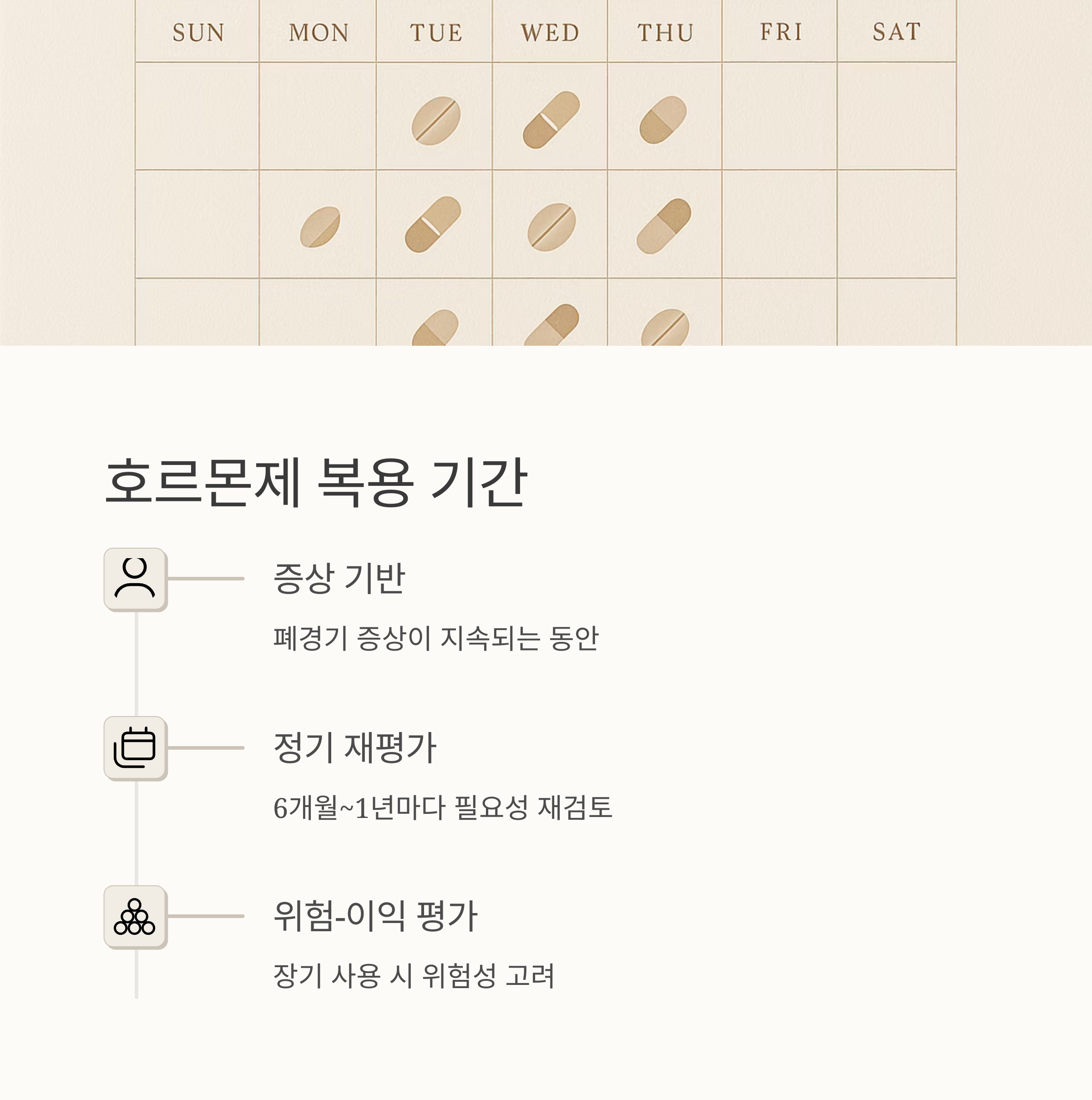 여성호르몬제는 언제, 어떻게, 얼마나 오래 복용해야 할까요? 이 질문은 정말 중요하죠. 사용 목적에 따라 복용 기간이 달라져요. 폐경기 증상 완화라면 증상이 지속되는 동안 복용할 수 있지만, 장기 복용 시 위험성을 고려해 정기적으로 재검토해야 해요.