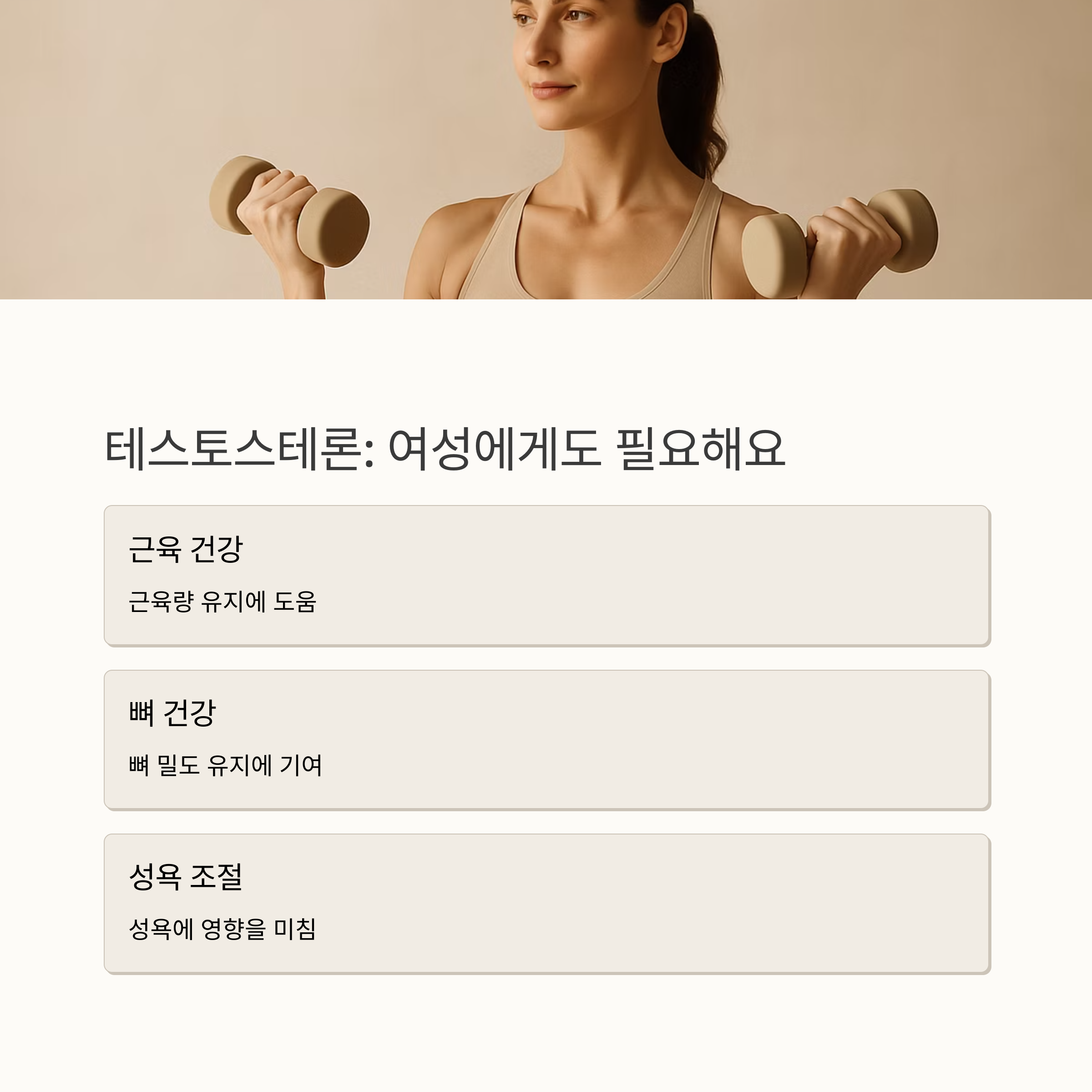 테스토스테론은 남성 호르몬으로 알려져 있지만, 여성에게도 필요해요. 근육량 유지, 뼈 건강, 성욕에 영향을 미치죠. 테스토스테론이 너무 많으면 여드름이나 다모증이 생길 수도 있고, 부족하면 피로감이나 성욕 저하를 느낄 수도 있어요.