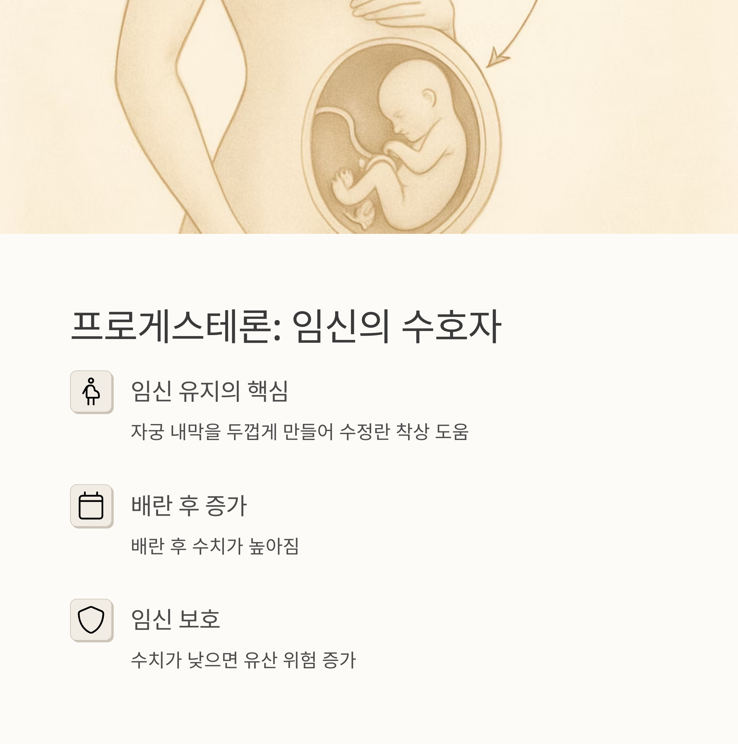 프로게스테론은 임신을 유지하는 데 꼭 필요한 호르몬이에요. 배란 후에 많아져서 자궁 내막을 두껍게 만들어 수정란이 착상할 수 있도록 도와주죠. 임신을 준비하거나 임신 중인 분들에게는 정말 중요한 호르몬이에요. 프로게스테론 수치가 낮으면 유산 위험이 높아지기도 한답니다.