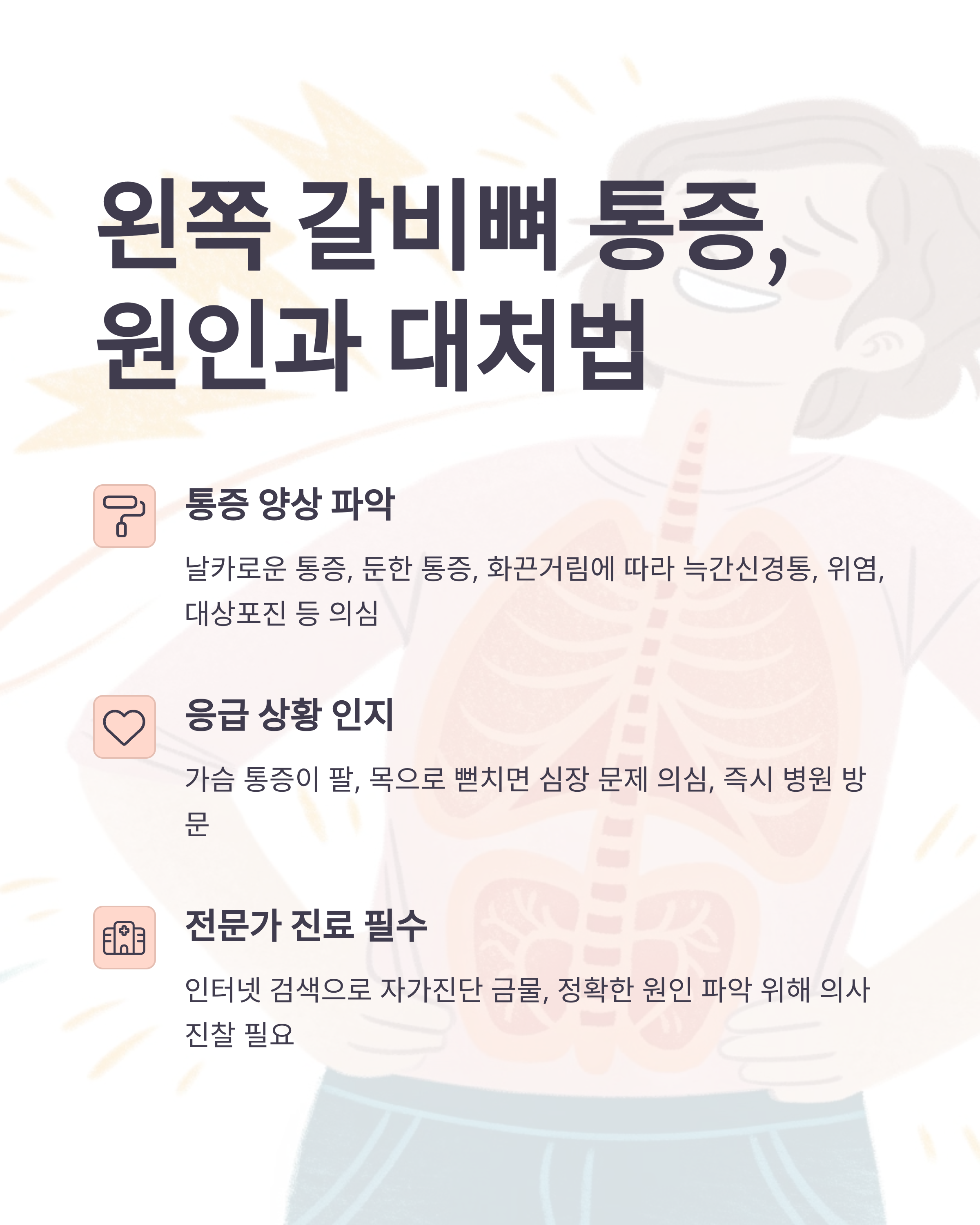 1. 왼쪽 갈비뼈 통증, 대체 왜 아픈 걸까? 위치별, 양상별 원인 파악!
