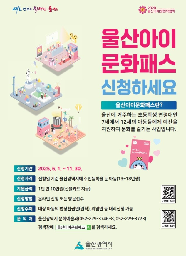 1. 울산아이문화패스 신청하고 문화 혜택 누리세요!