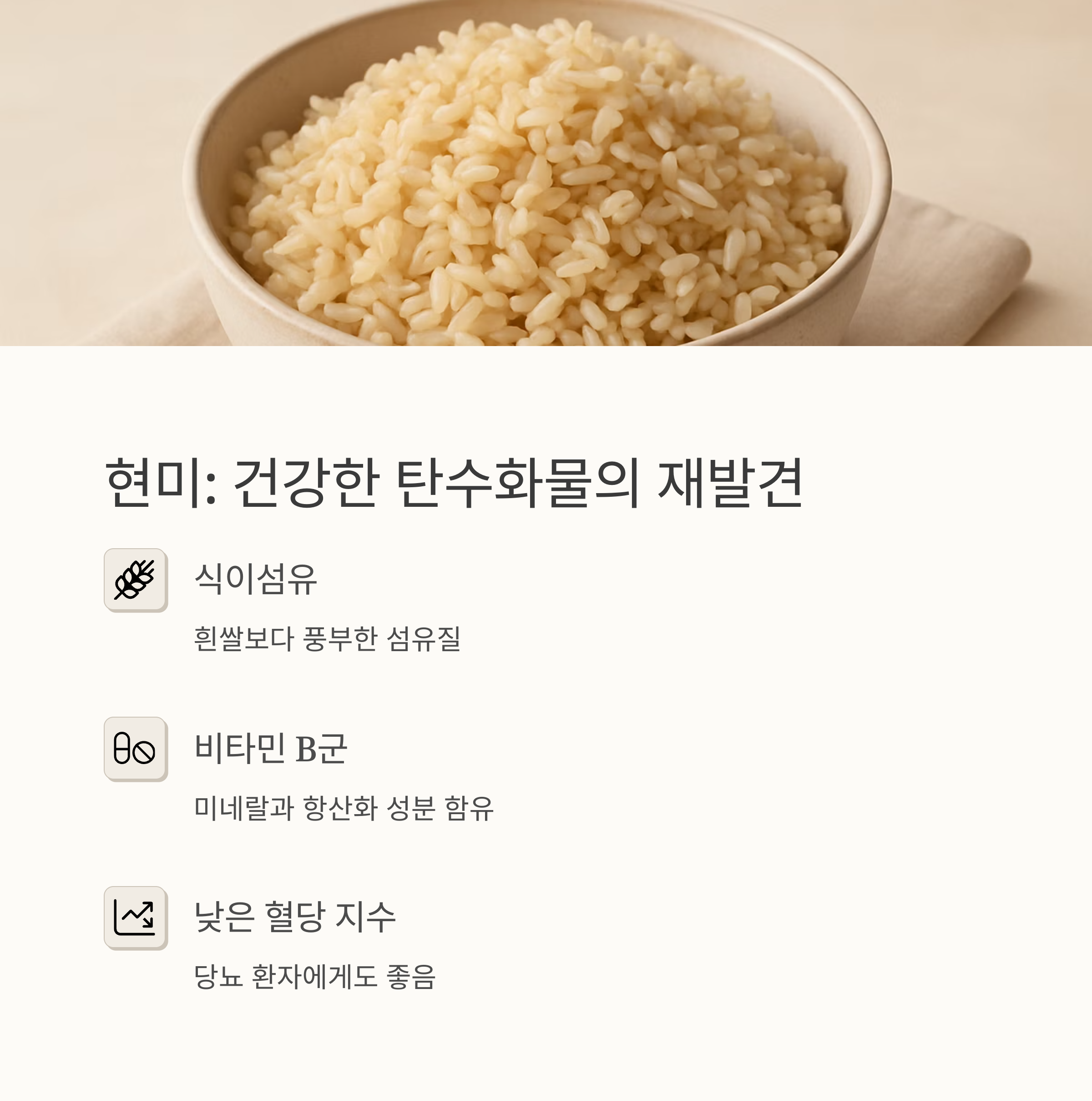 예전에는 흰쌀밥을 주로 먹었는데, 아버지 수술 이후로는 현미밥으로 바꿨어요. 처음에는 현미밥이 거칠고 소화가 잘 안 될까 걱정했지만, 현미를 충분히 불린 후 압력솥에 지어 먹으니 부드럽고 소화도 잘 되더라고요. 현미에는 흰쌀밥보다 식이섬유가 훨씬 많고, 비타민 B군, 미네랄, 항산화 성분도 풍부해서 위 점막을 보호하는 데 도움이 된대요.