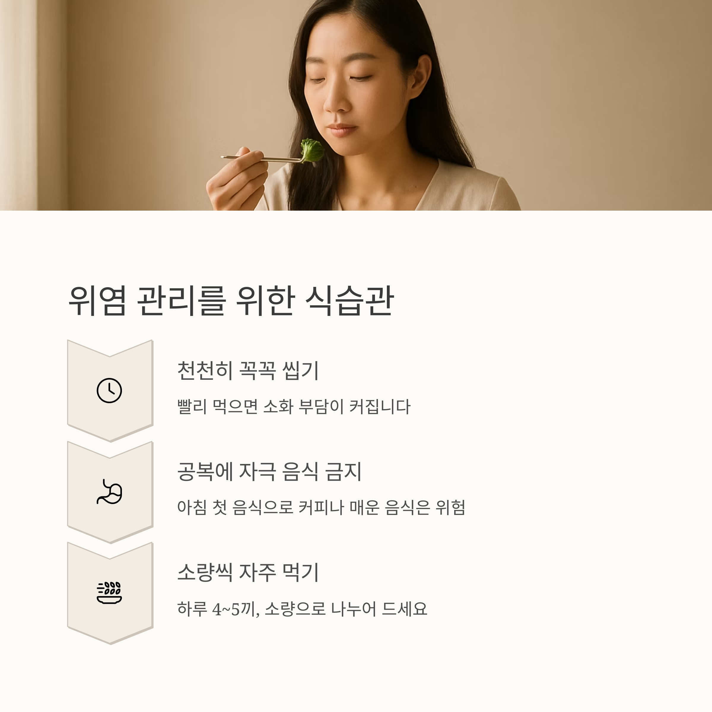 위염 관리에 가장 중요한 건 바로 식습관이에요. 아무리 좋은 약을 먹어도 식습관이 잘못되면 효과를 보기 어렵거든요. 그럼 어떻게 해야 할까요?