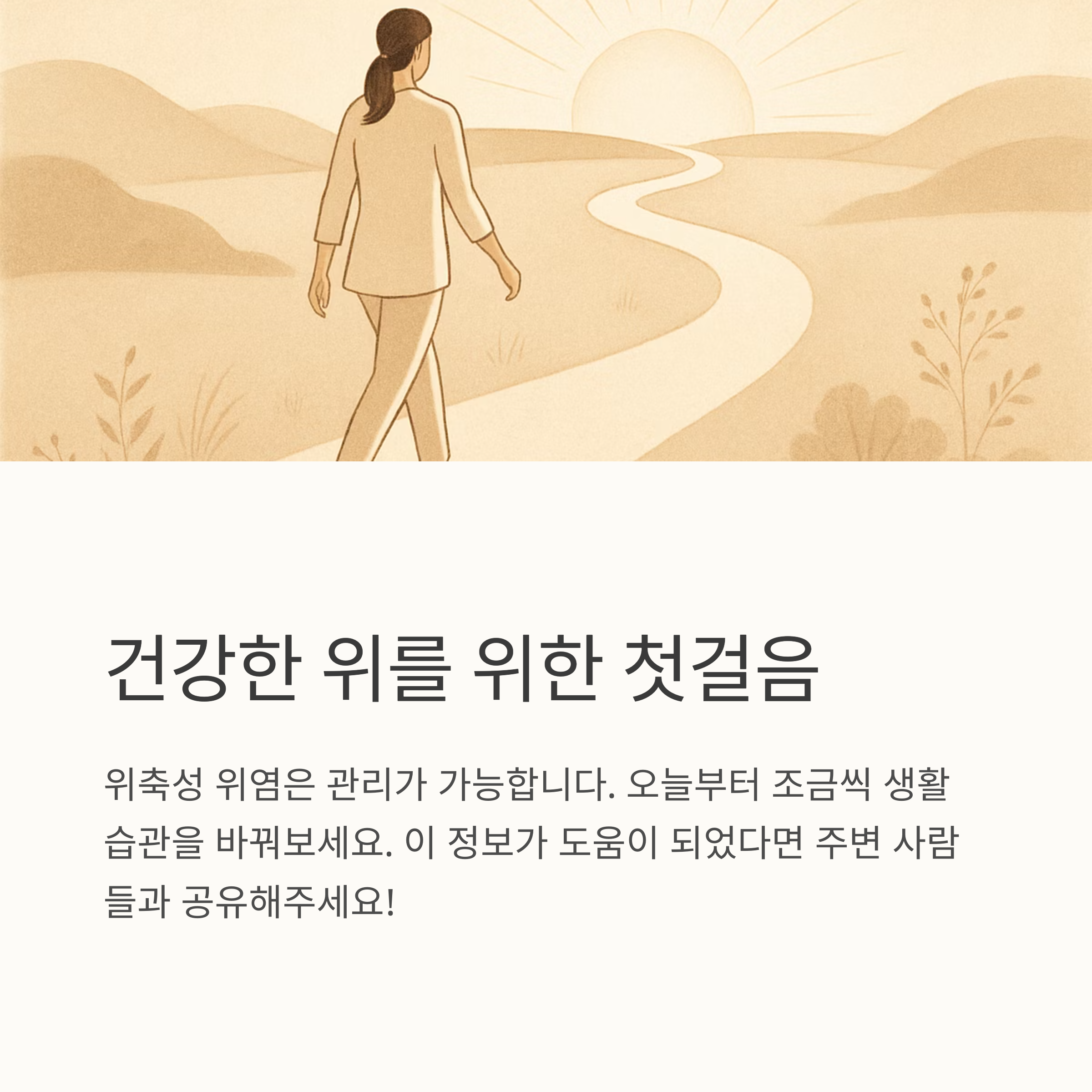 위염 종류부터 위축성 위염의 원인과 증상, 그리고 치료 및 관리법, 도움이 되는 음식과 영양제까지 자세하게 알아보았습니다. 위축성 위염은 초기에 발견하고 관리하는 것이 중요하다는 사실을 기억하세요. 건강한 위를 위해 오늘부터 조금씩 생활 습관을 바꿔보는 건 어떨까요? 작은 변화들이 모여 큰 건강으로 이어진답니다! 더 궁금한 점이 있다면 언제든지 문의해주세요! 항상 건강하세요!