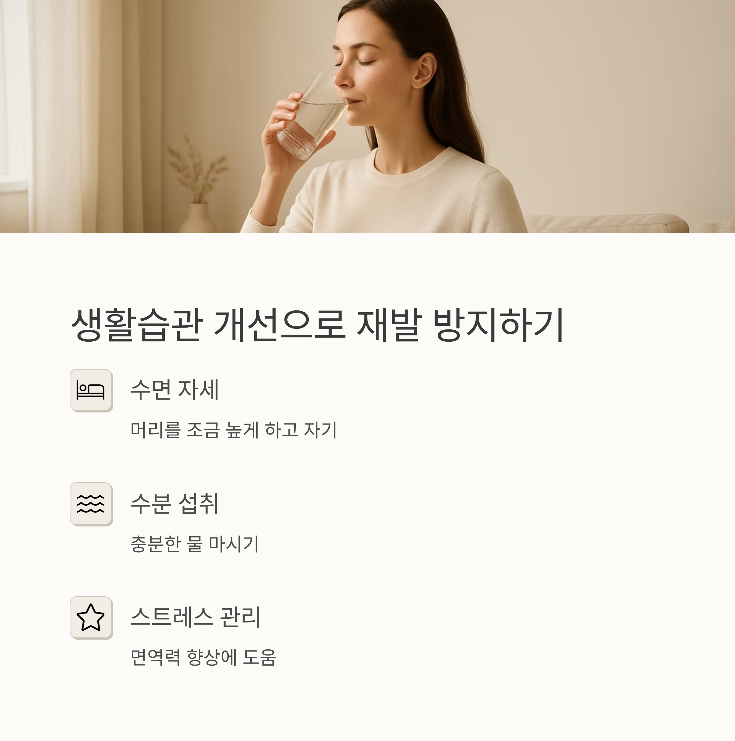 특히 치료 직후 1~2주 동안은 더욱 신경 써서 생활해야 해요. 저는 이 기간 동안 몸을 최대한 안정시키고, 충분한 휴식을 취하는 데 집중했어요. 이 작은 노력들이 재발 방지에 큰 도움이 되었어요. 매일 아침 일어나 몸을 가볍게 풀어주는 스트레칭이나 산책도 도움이 된답니다. 저에게도 큰 위로가 되었어요.