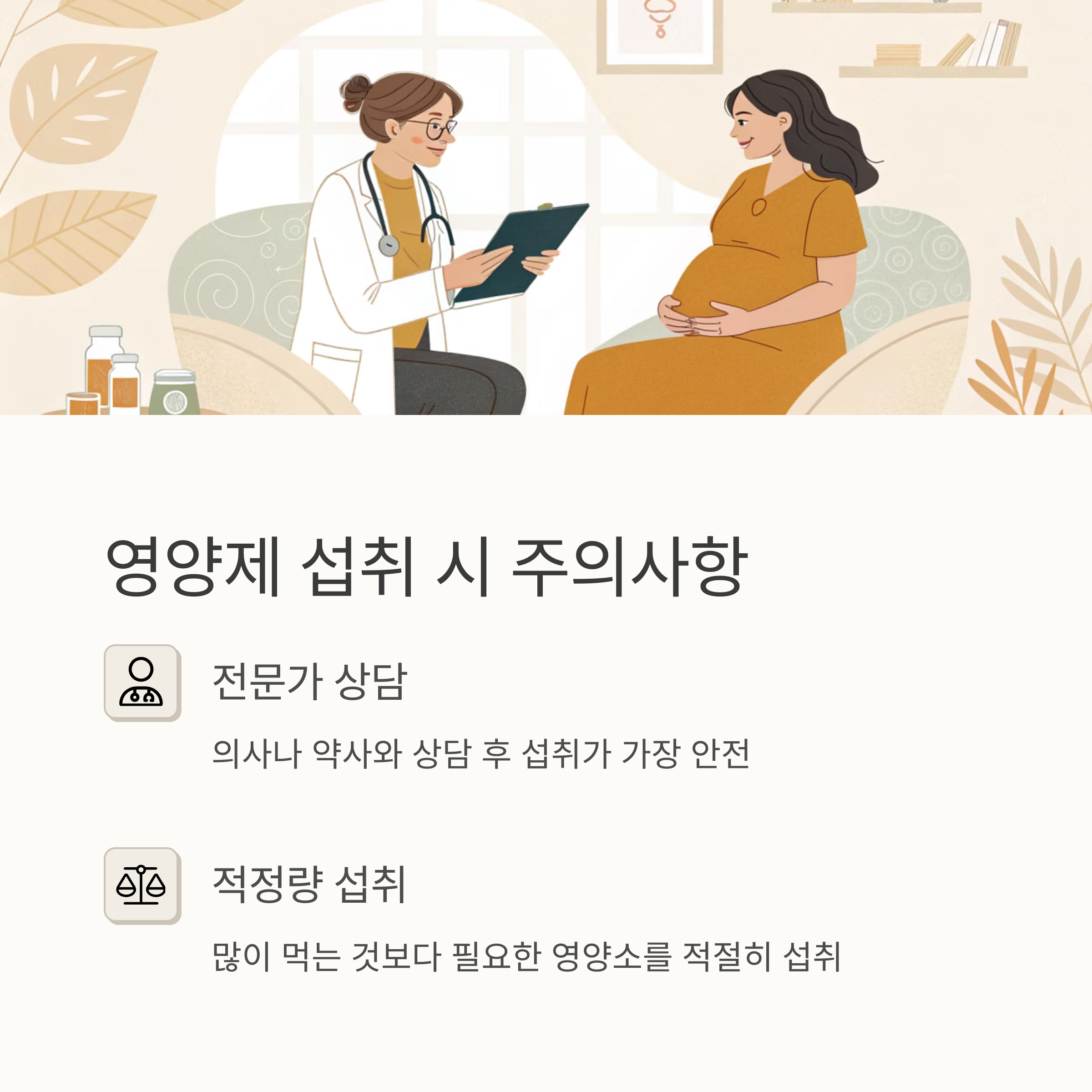 하지만 이건 어디까지나 일반적인 권장 사항이고요, 임신 초기 검사 결과나 개인의 건강 상태에 따라 필요한 영양소가 다를 수 있으니 의사와 상담하는 것을 잊지 마세요.