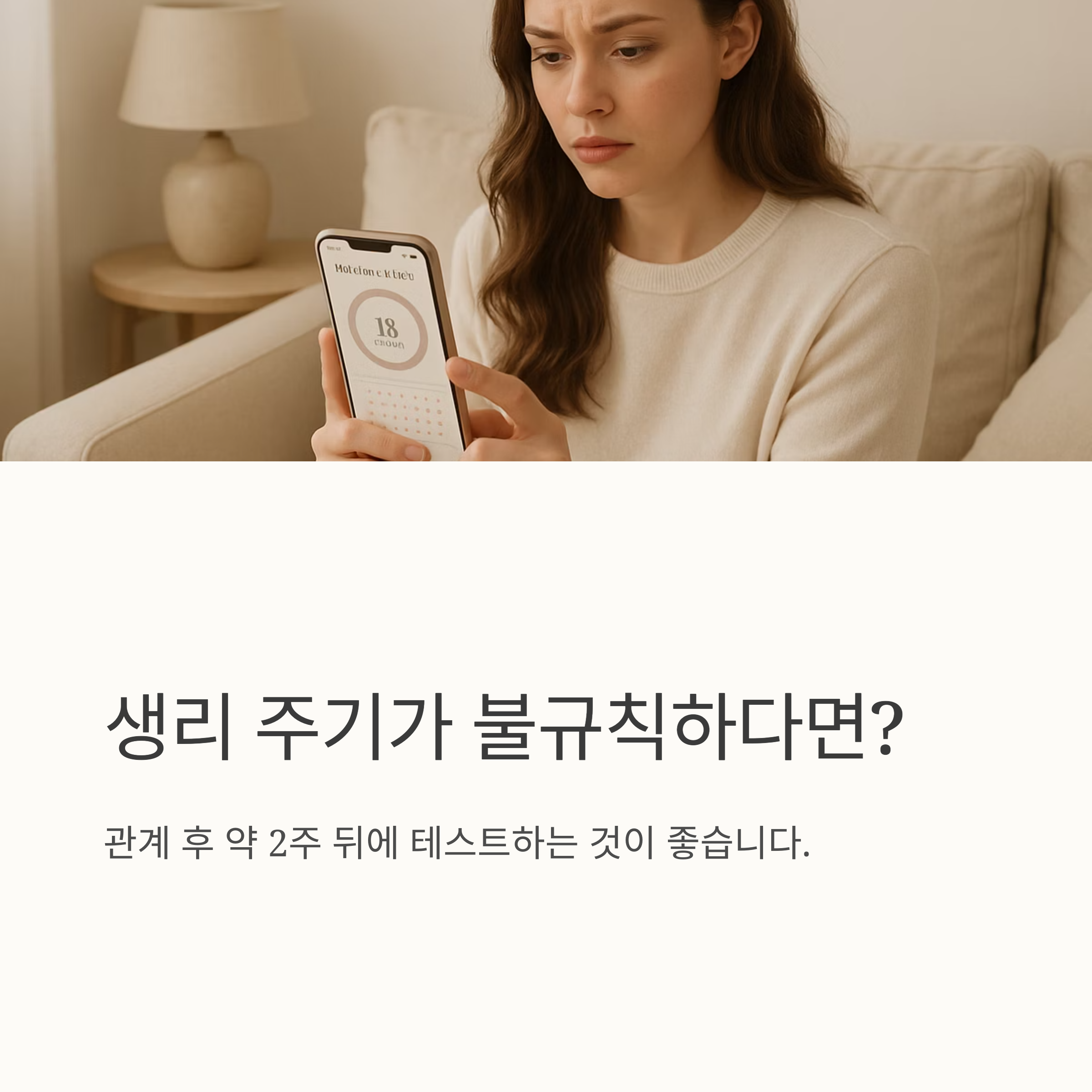 생리 주기가 불규칙한 경우에는 배란일을 정확히 알기 어렵기 때문에, 임신 테스트의 정확도가 떨어질 수 있습니다. 생리 주기가 불규칙하더라도 관계를 가진 날로부터 2주 정도 후에 테스트를 해보는 것이 좋습니다. 배란 예측 앱이나 배란 테스트기를 활용하면 배란일을 파악하는데 도움이 될 수 있고요.