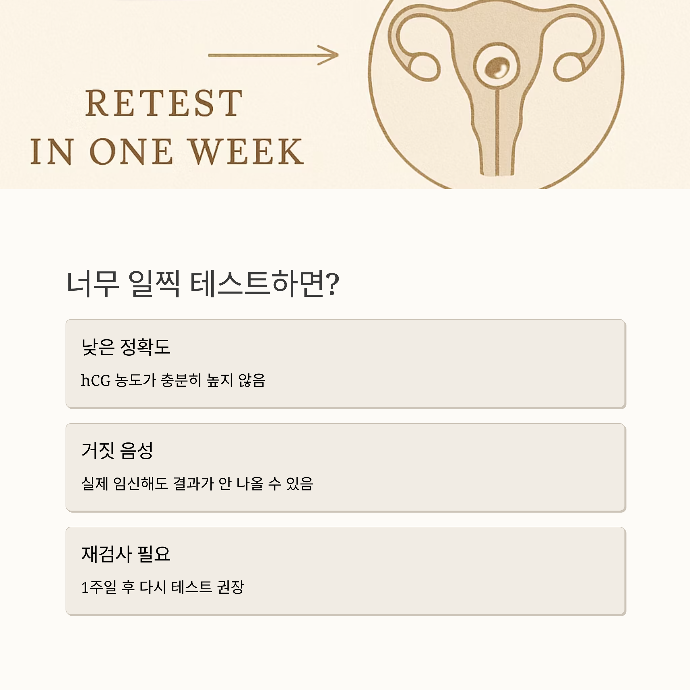 하지만 생리 예정일이 지났는데도 생리가 시작되지 않고 임신 초기 증상이 있다면, 좀 더 일찍 테스트해 볼 수도 있어요. 하지만 이 경우에는 결과가 정확하지 않을 가능성이 높으니, 생리 예정일로부터 1주일 후 다시 테스트하는 것이 좋습니다. 결과에 너무 조급해 하지 않고 차분하게 기다리는 마음가짐이 중요해요.