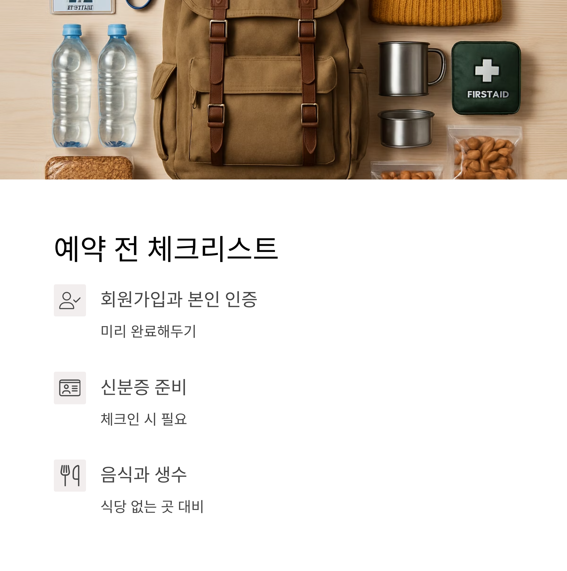자연휴양림 예약을 성공적으로 마무리하기 위해서는 예약 전 체크리스트를 확인하는 것이 중요해요. 먼저 회원가입과 본인 인증을 완료해야 하고요, 신분증은 체크인 시 필요하니 꼭 챙겨야 해요. 숙소에 따라 식당이 없는 곳도 있으니 음식과 생수는 미리 준비하는 게 좋고요.