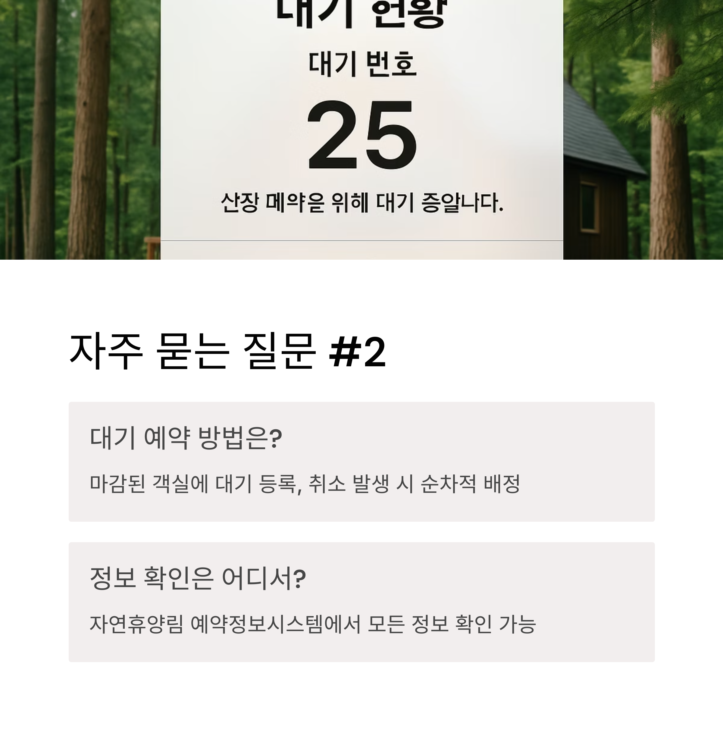 이 모든 정보는 자연휴양림 예약정보시스템에서 확인할 수 있답니다. 꼼꼼하게 체크리스트를 확인하고 FAQ를 참고한다면 예약 과정에서 발생할 수 있는 문제를 미리 예방할 수 있을 거예요.