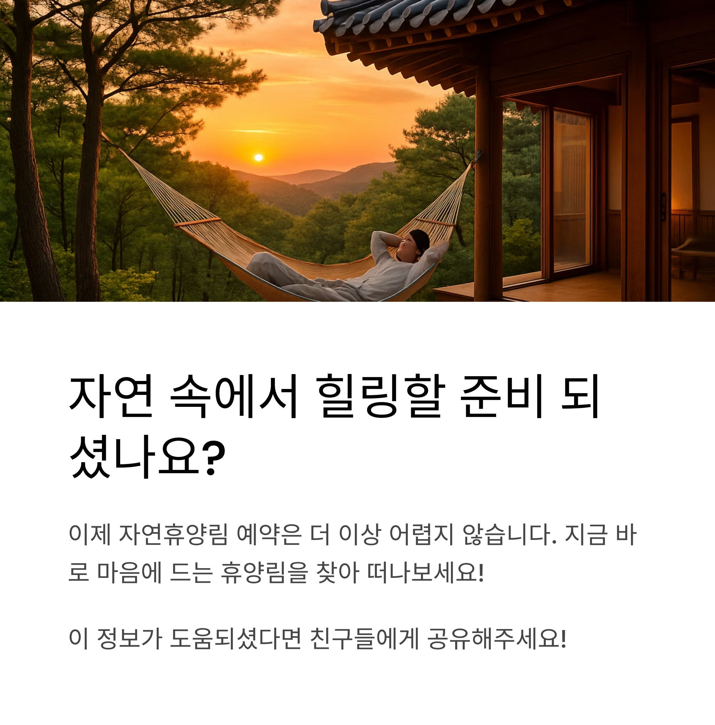 자, 이제 자연휴양림 예약에 대한 모든 것을 알려드렸습니다. 처음에는 어렵게 느껴질 수 있지만, 제가 알려드린 팁들을 잘 활용하면 누구든 쉽고 편리하게 예약할 수 있어요. 조금만 노력하면 멋진 숲속에서 힐링하는 행복한 시간을 보낼 수 있답니다. 지금 바로 마음에 드는 자연휴양림을 찾아 떠나보세요! 즐거운 여행 되세요!