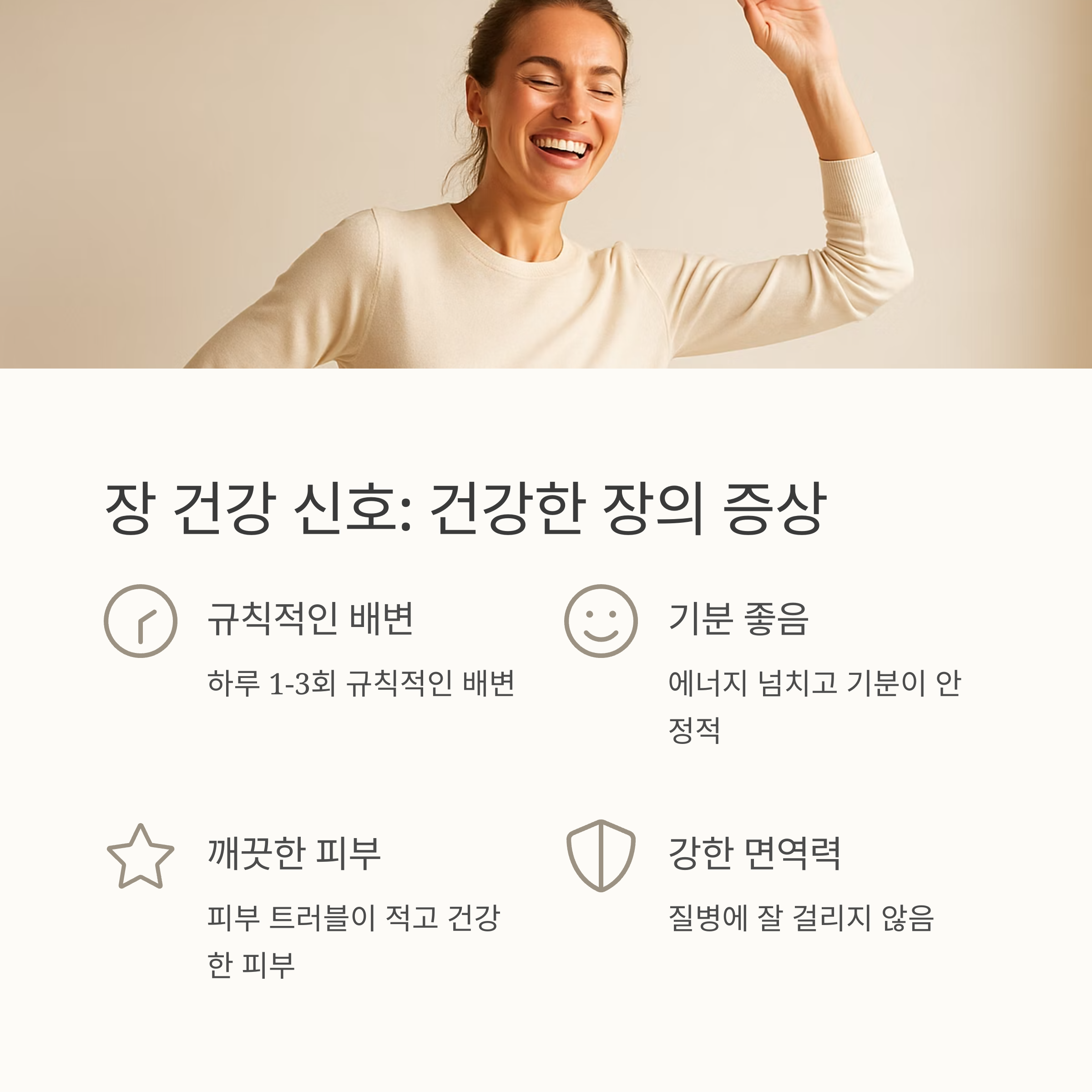 그러니 장이 건강하지 않으면 소화불량은 물론이고, 피로감, 면역력 저하, 심지어 우울증이나 피부 트러블까지 생길 수 있다는 사실! 장 건강이 얼마나 중요한지 이제 감이 오시죠? 건강한 장을 유지하는 것은, 곧 건강한 삶을 유지하는 지름길이라고 생각하시면 됩니다. 우리 몸의 중심, 장을 튼튼하게 만들어 건강한 삶을 누려봐요!