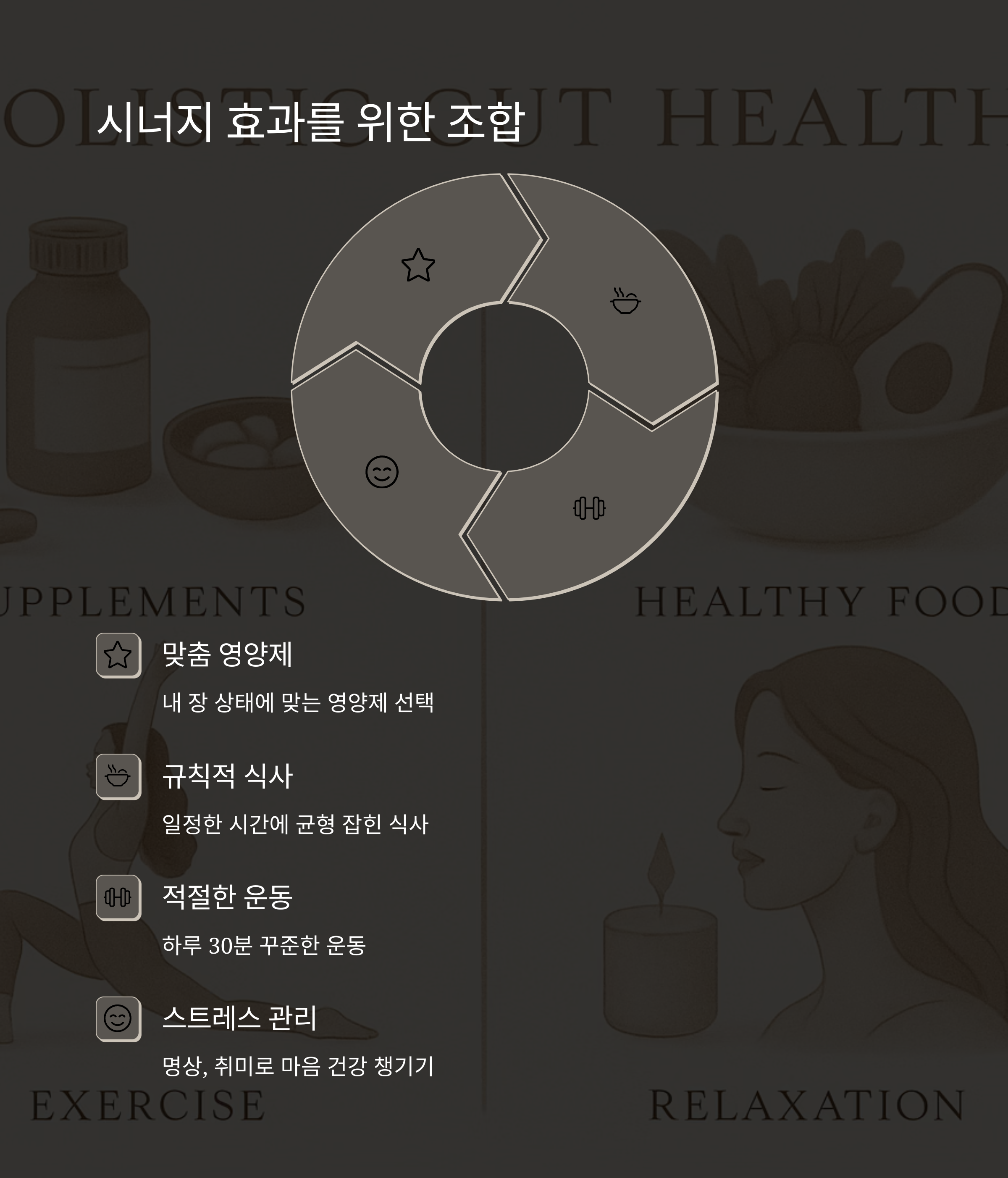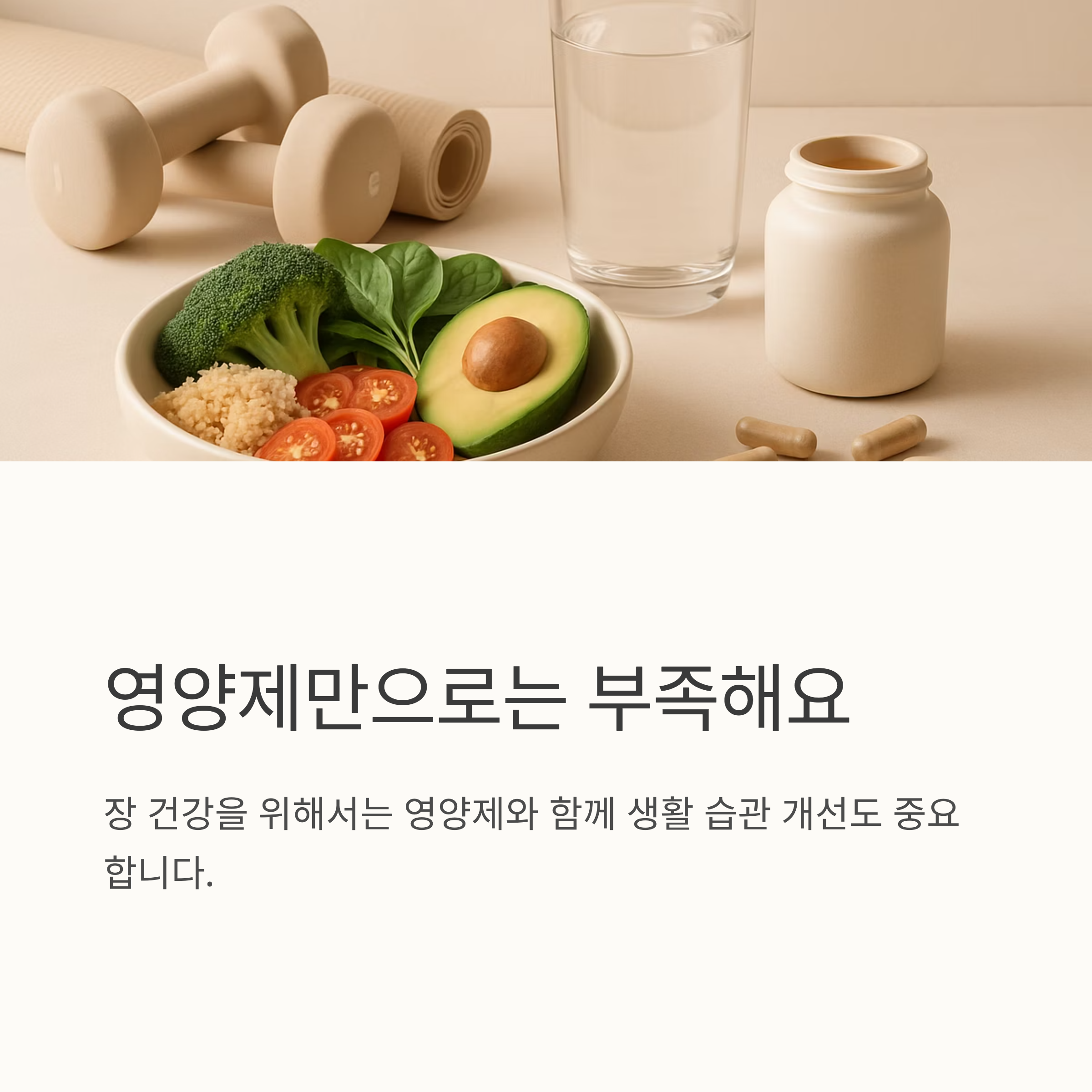 장 건강을 위한 영양제 선택과 생활 습관 개선에 대한 이야기를 나눠보았습니다. 내 몸에 맞는 영양제를 선택하고 꾸준히 섭취하며, 규칙적인 식사와 적절한 운동, 스트레스 관리까지 병행한다면 건강한 장을 유지하는데 큰 도움이 될 거예요. 단순히 영양제에만 의존하기 보다는 건강한 생활 습관을 함께 갖추면 더욱 효과적인 장 관리가 가능하다는 사실을 기억하세요. 건강한 장, 건강한 삶을 위한 첫걸음을 함께 해주셔서 감사합니다!