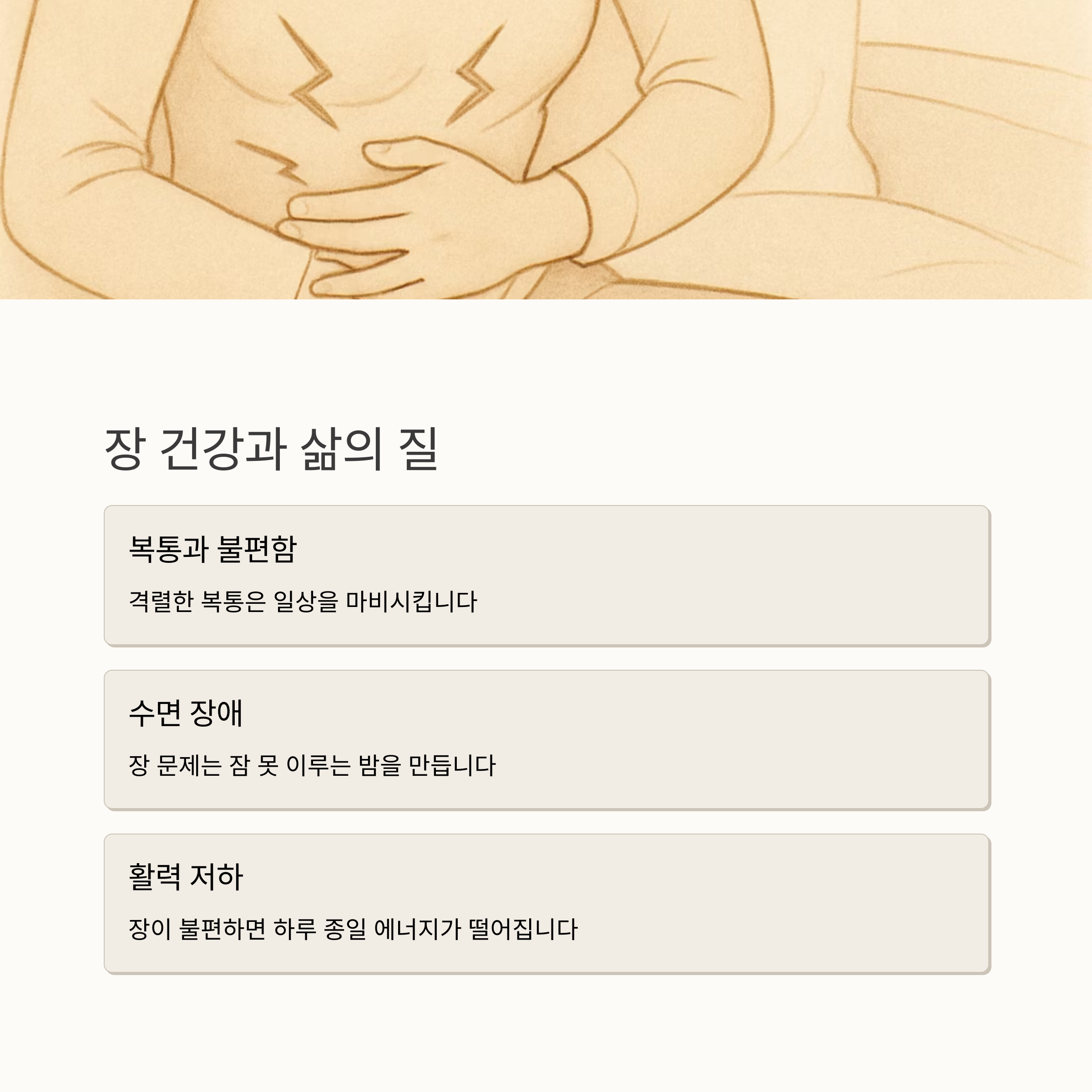 잠 못 이루는 밤, 힘든 하루… 이런 고통을 겪고 나니 장 건강 관리가 얼마나 중요한지 정말 뼈저리게 느껴졌어요. 건강한 삶을 위해서는 장 건강을 꼭 챙겨야 한다는 것을 다시 한번 강조하고 싶어요. 장이 편안해야 하루가 편하고, 삶의 질이 달라진다는 걸 직접 경험했거든요. 건강한 장을 위한 첫걸음, 지금부터 함께 시작해 봐요!
