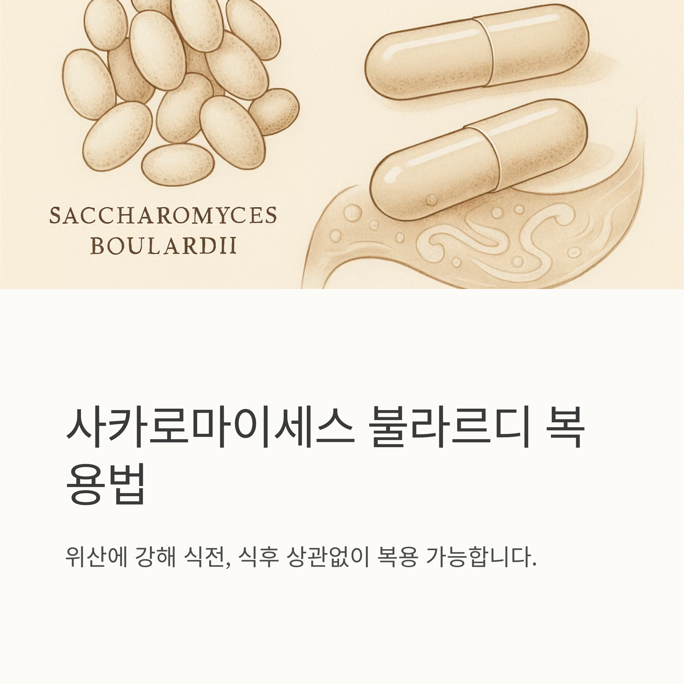 사카로마이세스 불라르디는 위산에 강해서 식전, 식후 상관없이 복용 가능해요. 하지만, 모든 영양제는 제품 설명서에 적힌 복용법을 잘 지키는 게 가장 중요해요. 그리고 약을 복용 중이거나 특정 질환이 있다면, 꼭 의사나 약사와 상담 후에 복용하는 것이 안전하다는 것 잊지 마세요.