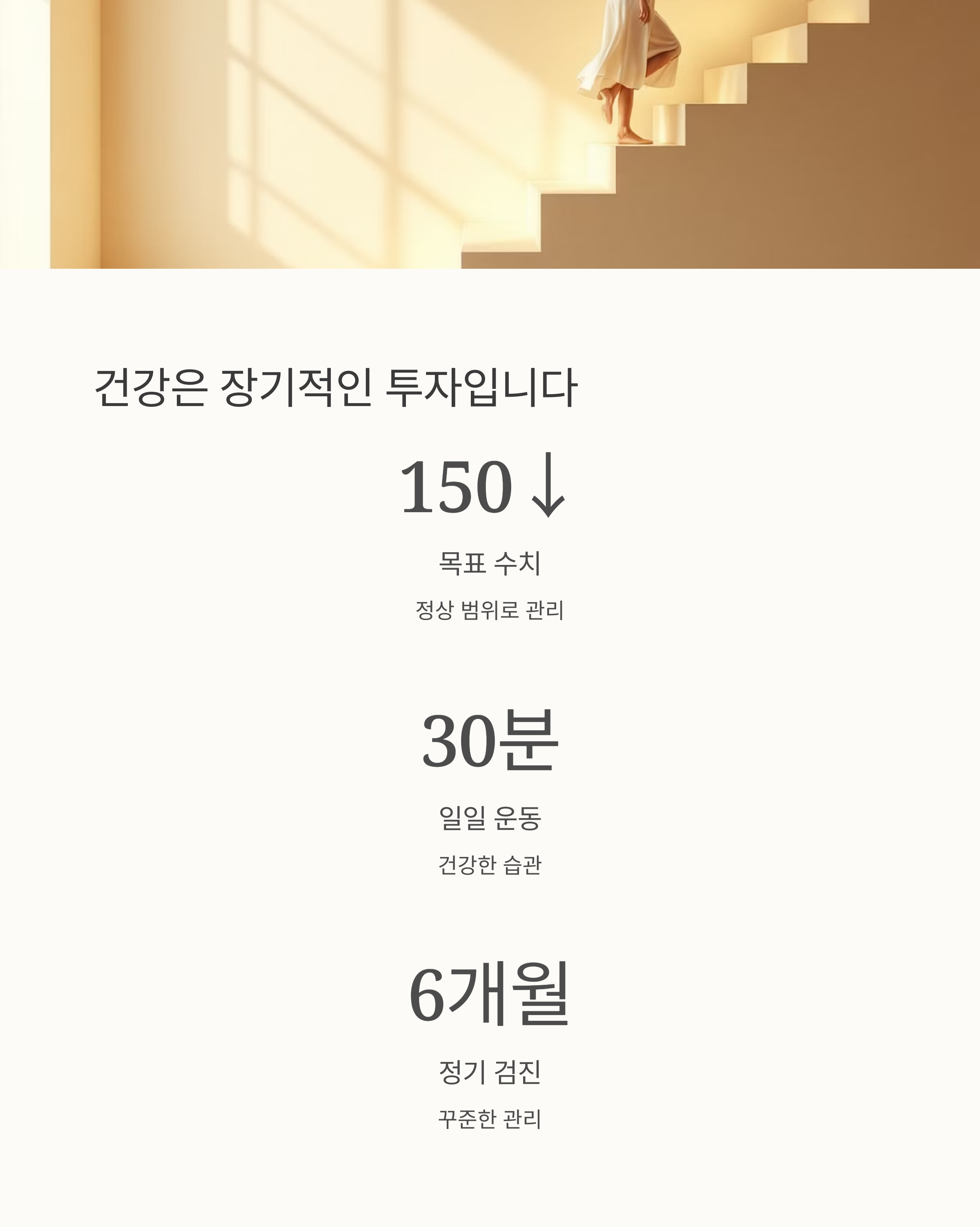 그래서 저도 정신 바짝 차리고 생활 습관을 바꾸기 시작했어요. 여러분도 저처럼 당황하지 말고, 지금부터라도 관리 시작하는 게 가장 중요합니다! 자신의 수치가 어느 정도인지 정확히 알고 어떻게 대처해야 할지 생각해 보세요. 어렵지 않아요! 함께 해봐요.