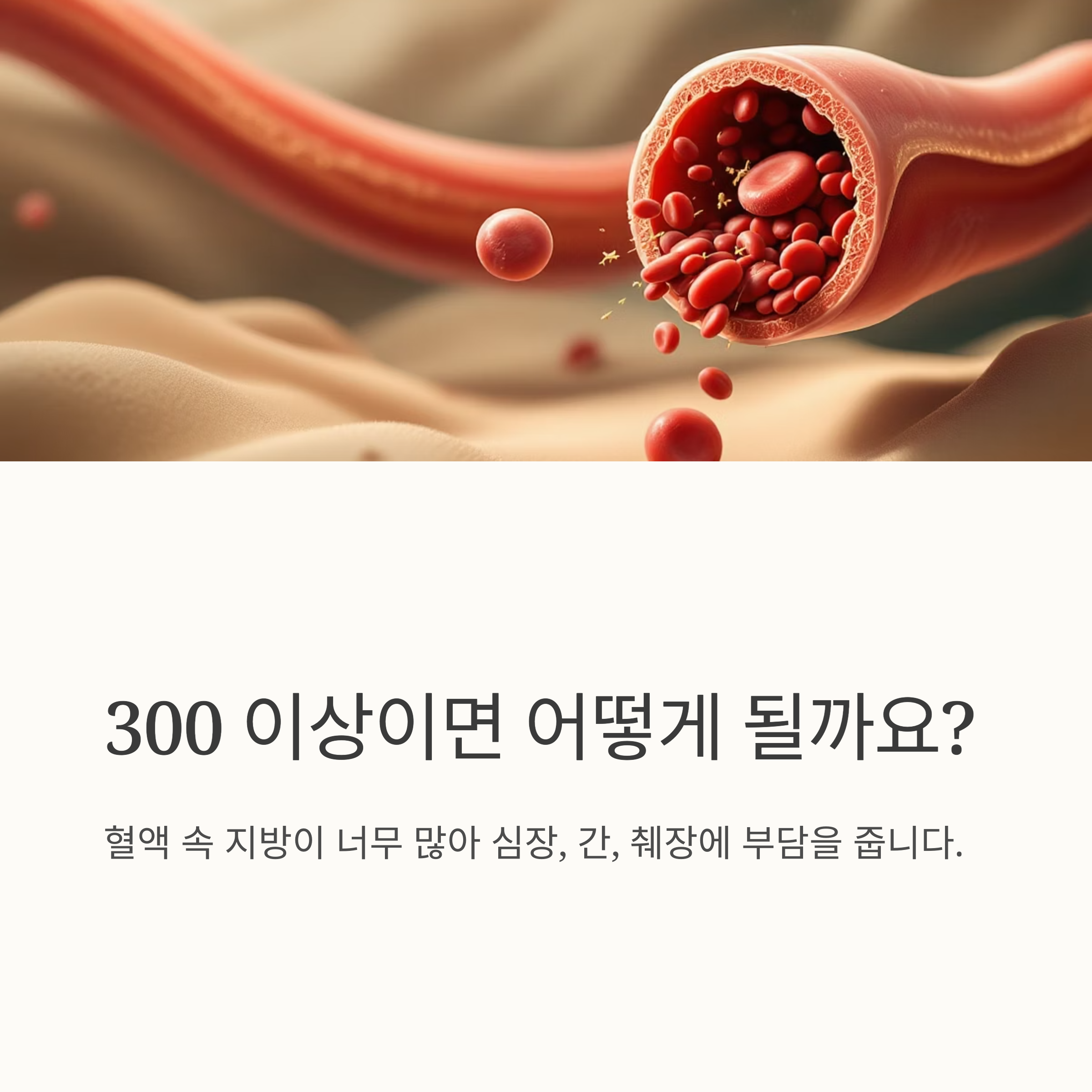 300이 넘는다는 건 혈액 속에 지방이 너무 많다는 뜻이고, 이건 심장, 간, 췌장 등 여러 장기에 부담을 주기 때문에 빨리 관리해야 해요. 저도 처음엔 '에이, 괜찮겠지' 했는데, 의사 선생님께서 엄격하게 관리하라고 하시더라고요.