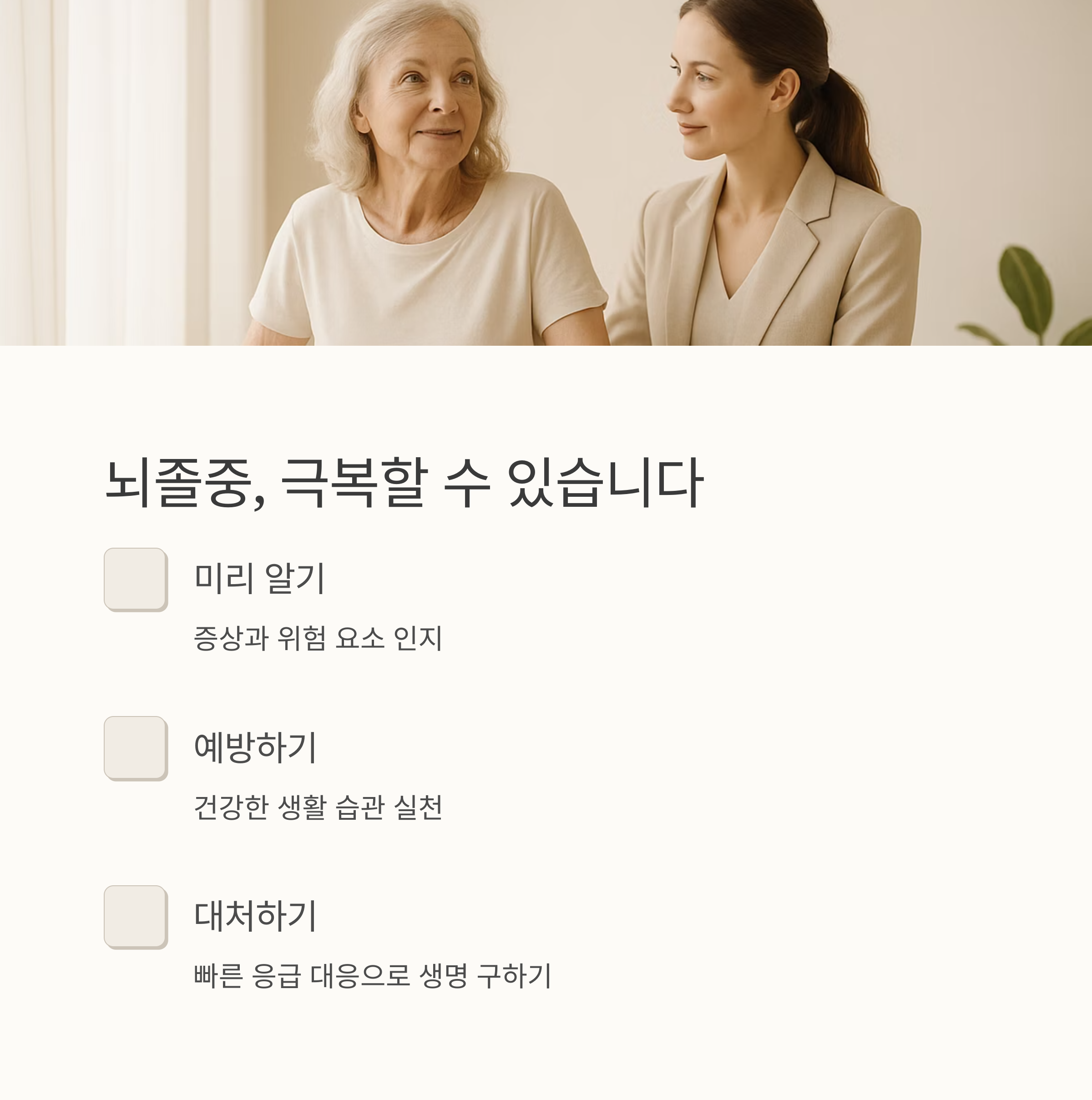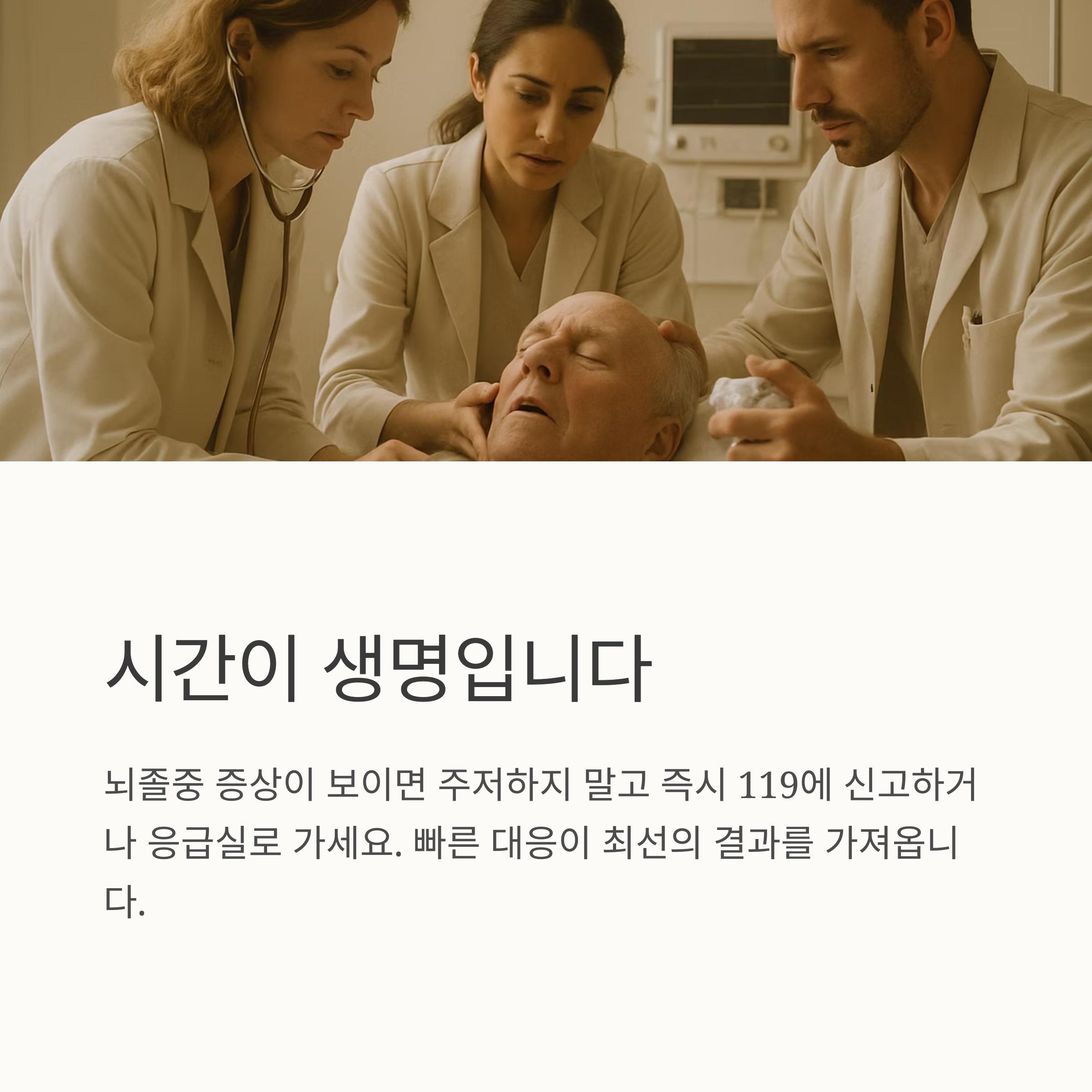 우리 몸의 복잡한 시스템 중 가장 중요한 뇌의 기능이 갑자기 멈추는 거니까 얼마나 위험한지 짐작이 가시죠? 그래서 조기 발견이 정말 중요하고, 평소 건강 관리에 신경 쓰는 게 더욱 중요한 거예요.