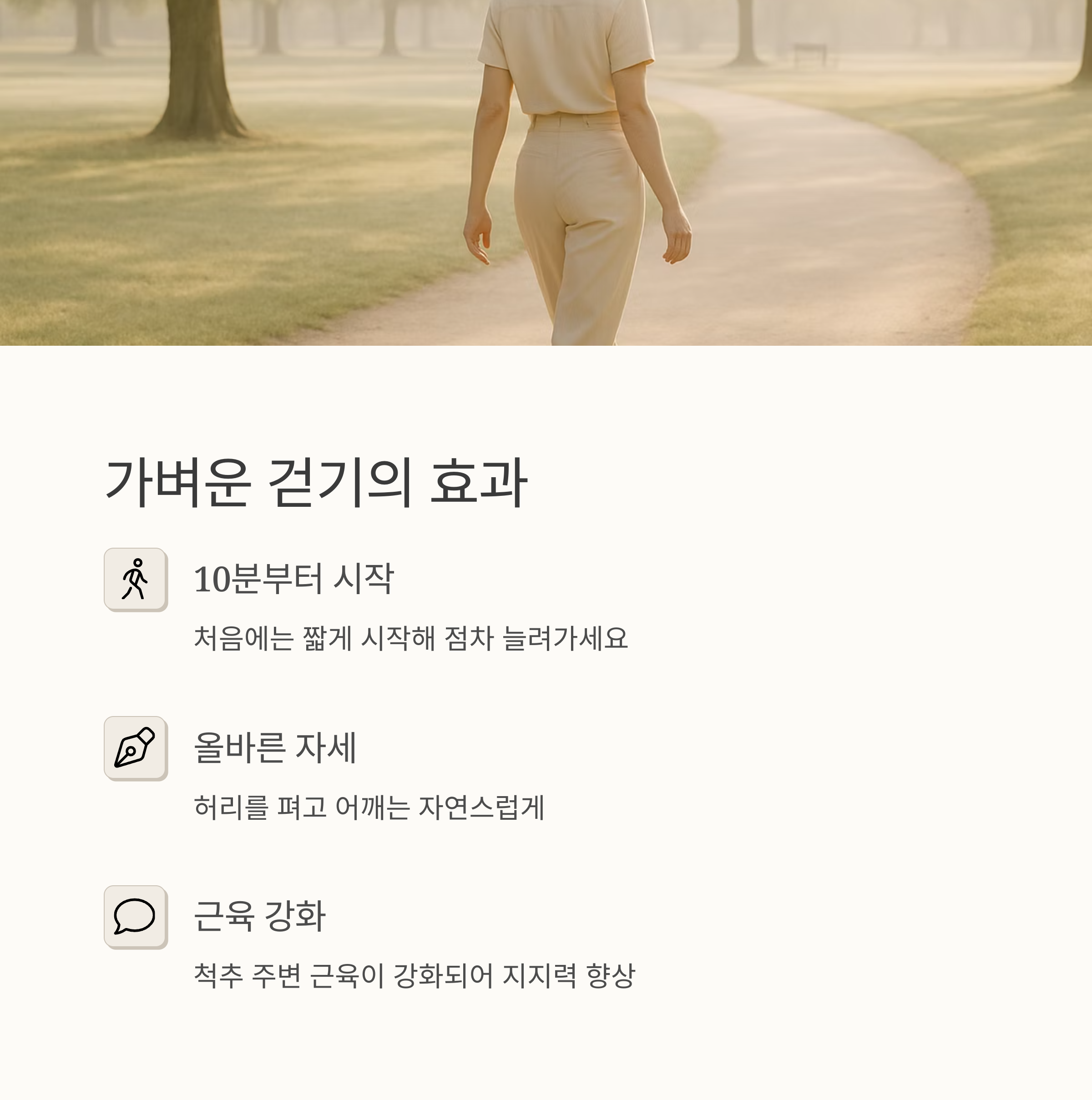 1. 척추관 협착증 운동법, 척추 건강 지키기, 가벼운 걷기의 효과