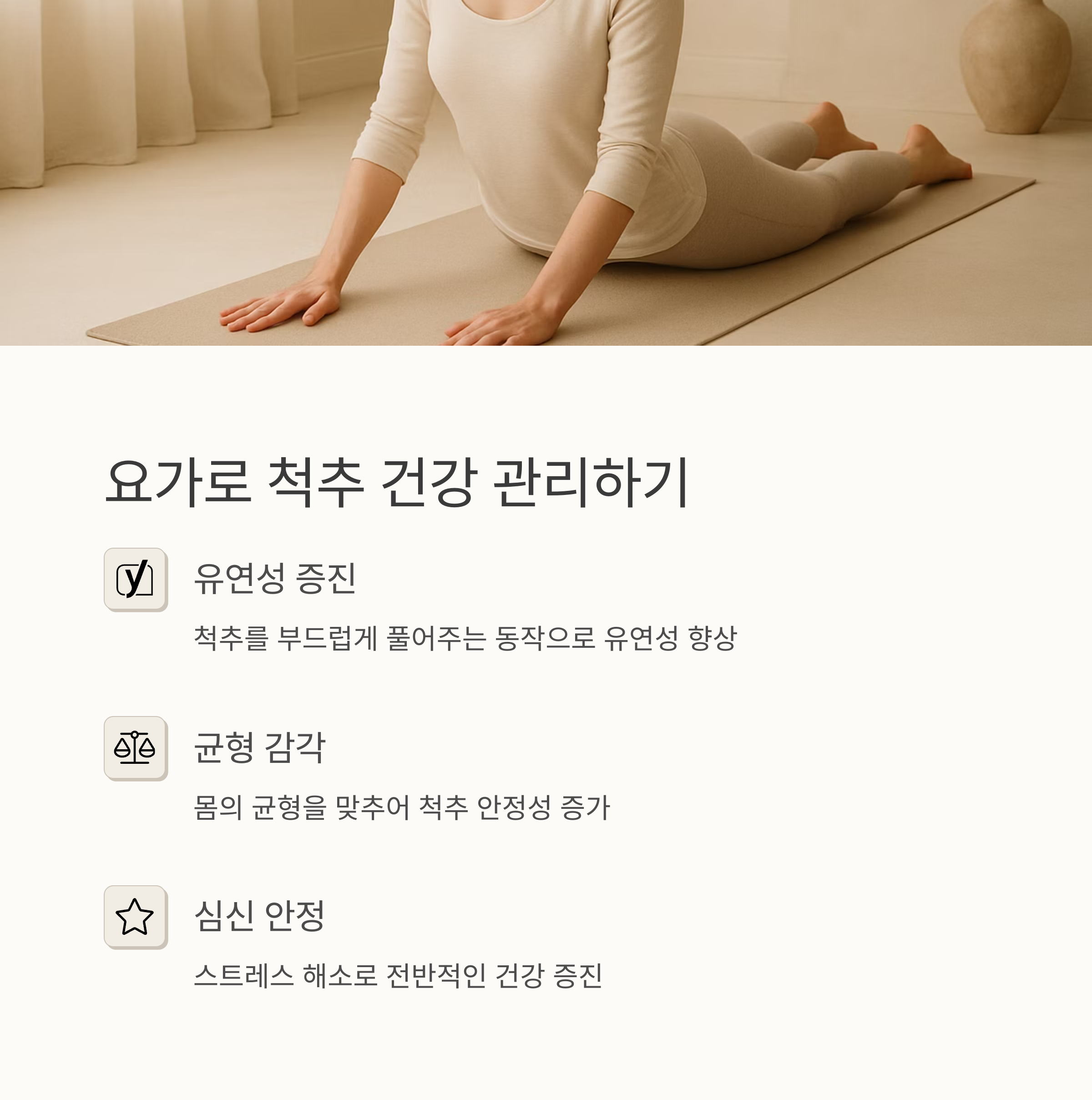 심신의 안정을 통해 스트레스를 해소하고 건강한 삶을 유지하는 데 기여할 수 있죠. 요가를 통해 몸의 균형을 맞추고 유연성을 키우면서 척추 건강을 관리해 보세요. 매일 꾸준히 한다면 척추 건강과 더불어 삶의 질 향상에 도움이 될 거예요.