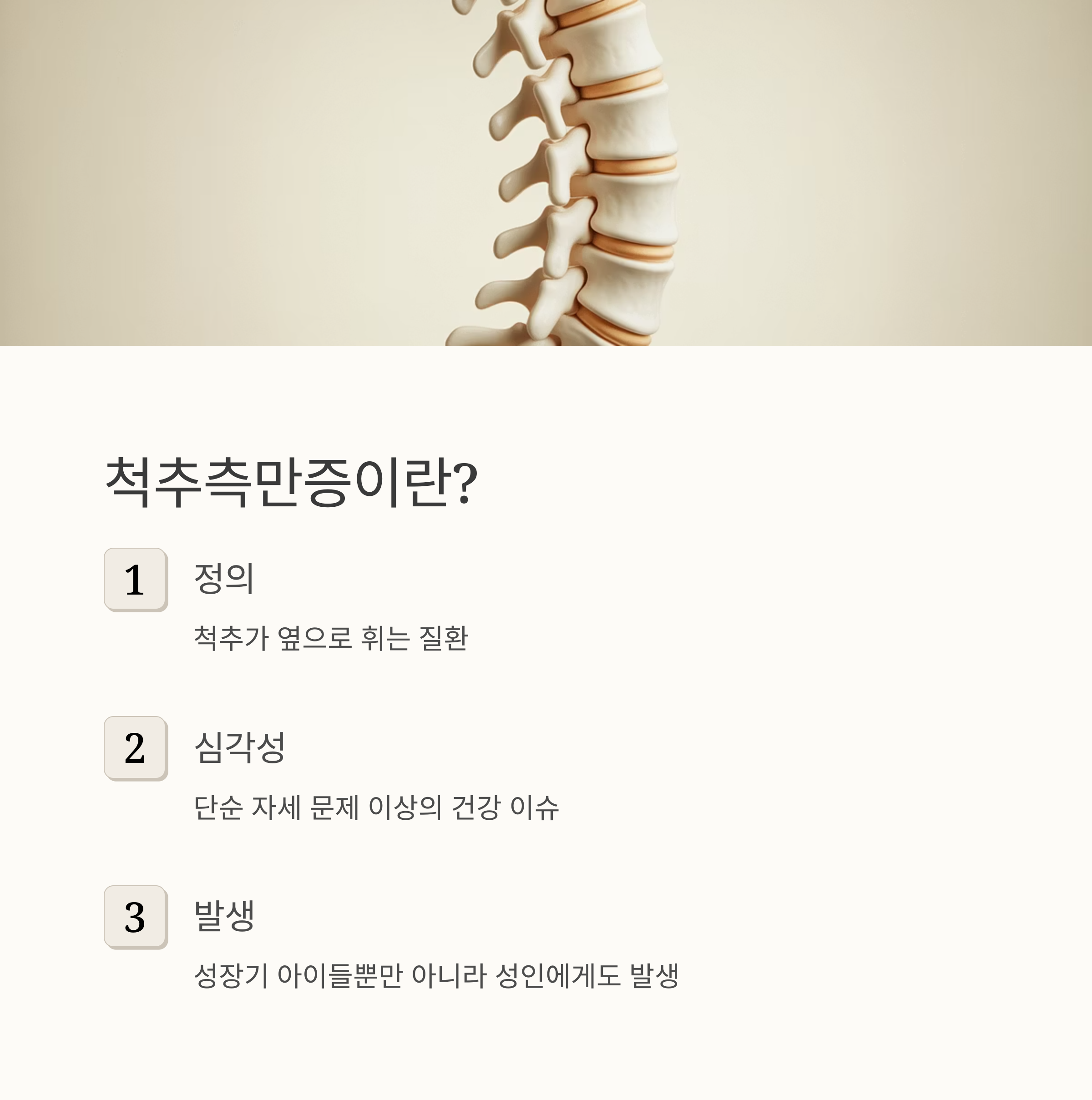 어깨가 자꾸만 한쪽으로 처지고, 등이 굽어 보이는 것 같나요? 거울 속 내 모습이 예전 같지 않고, 옷도 예쁘게 안 어울린다고 느껴지시나요? 혹시 척추측만증을 의심해보셨나요? 척추측만증은 척추가 옆으로 휘는 질환으로, 단순히 자세가 나쁜 것 이상의 문제를 일으킬 수 있습니다.
