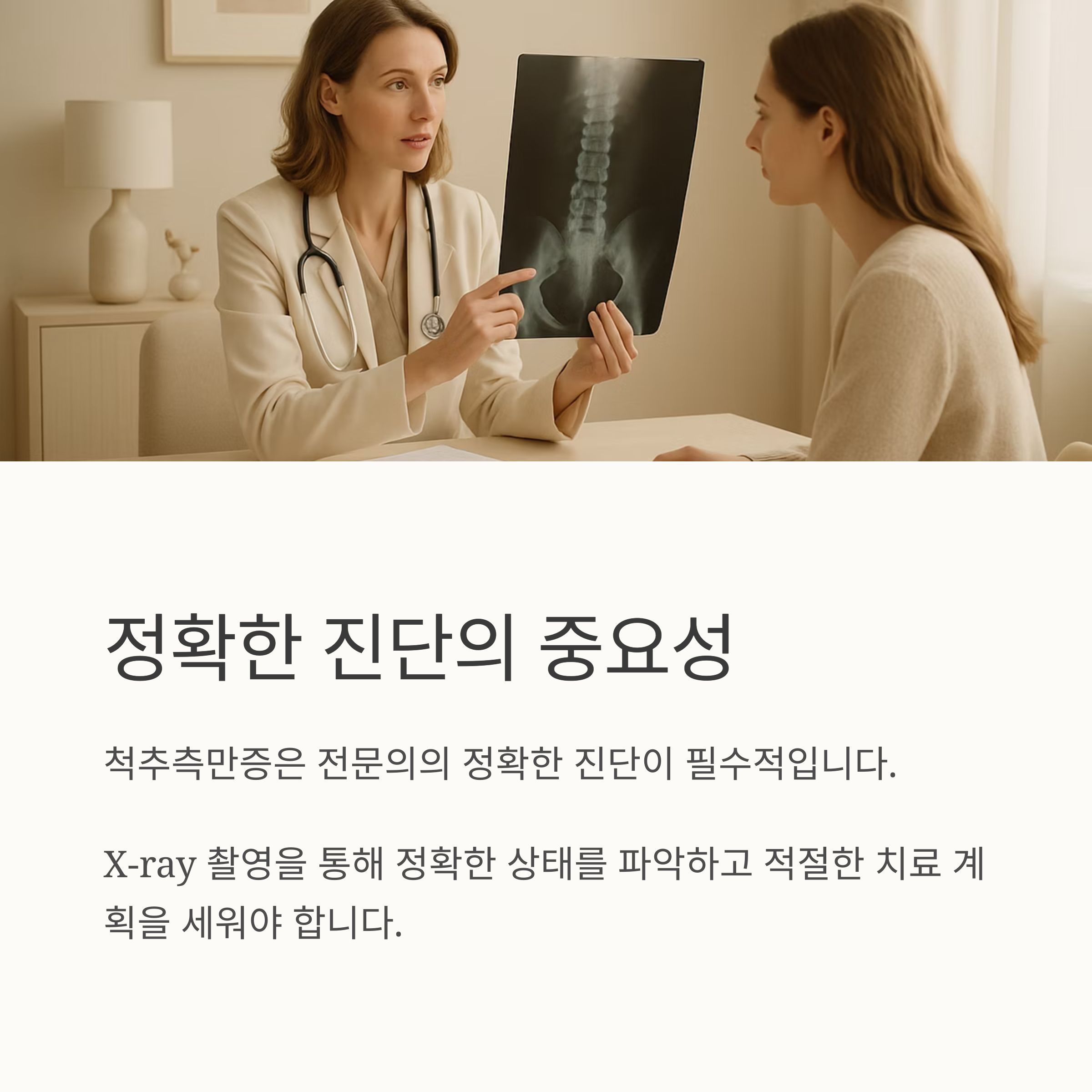 하지만 이러한 증상은 다른 질환과 겹칠 수 있으므로, 정확한 진단을 받는 것이 매우 중요해요. 자가진단으로 척추측만증이라고 단정 짓기보다는 전문의의 진찰을 통해 정확한 원인을 파악하고 치료 계획을 세우는 것이 가장 안전하고 효과적인 방법이라는 점을 꼭 기억해 주세요. 자신의 몸에 대한 관심과 정확한 진단만이 건강을 지키는 지름길이에요.