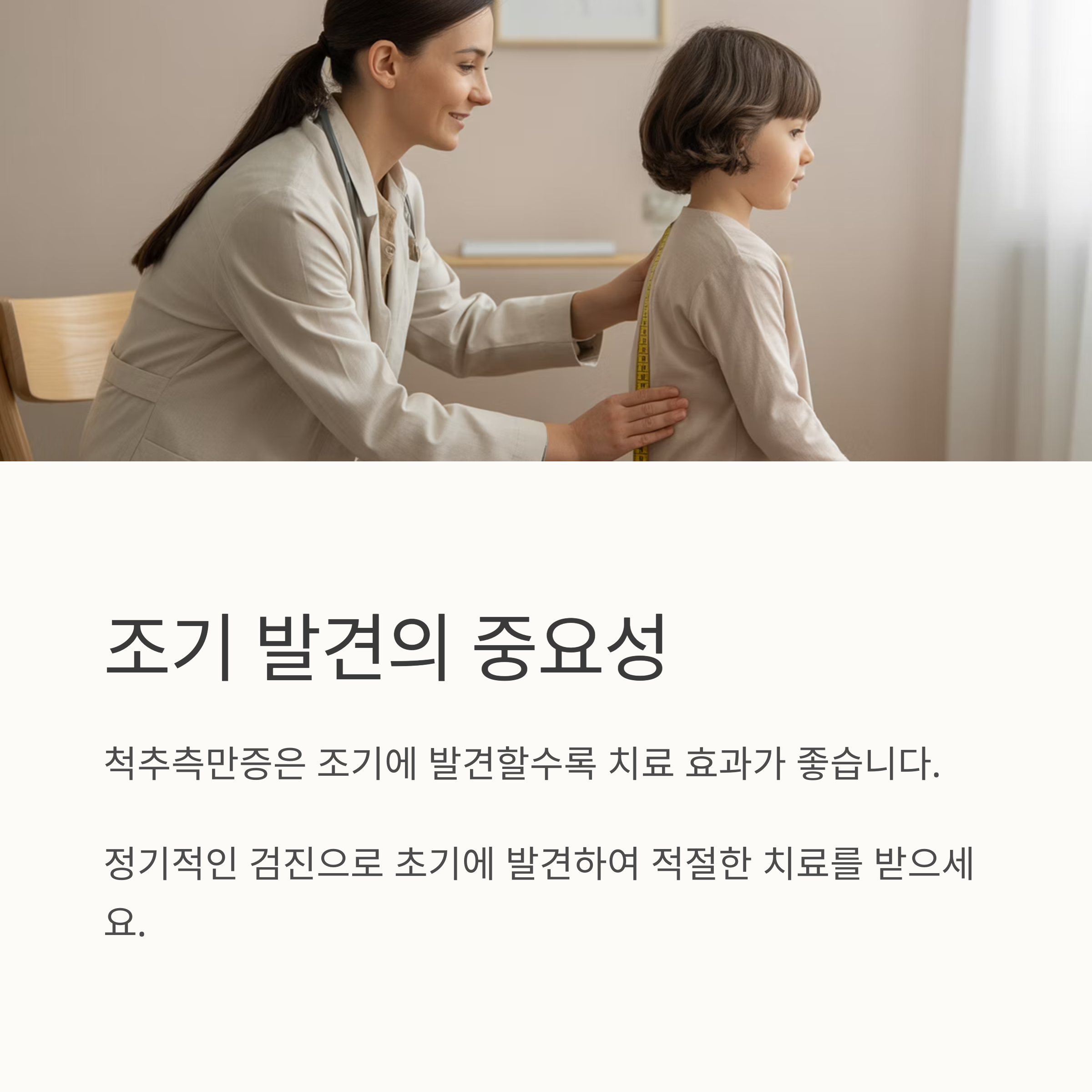 척추측만증 관리의 핵심은 바른 자세와 꾸준한 운동입니다. 매일 거울을 보며 자세를 체크하고, 의자에 앉을 때는 엉덩이를 등받이에 밀착시키는 습관을 들여야 해요. 그리고 스마트폰을 사용할 때 고개를 숙이지 않도록 주의하고, 잠잘 때도 너무 높은 베개는 피하는 것이 좋답니다.
