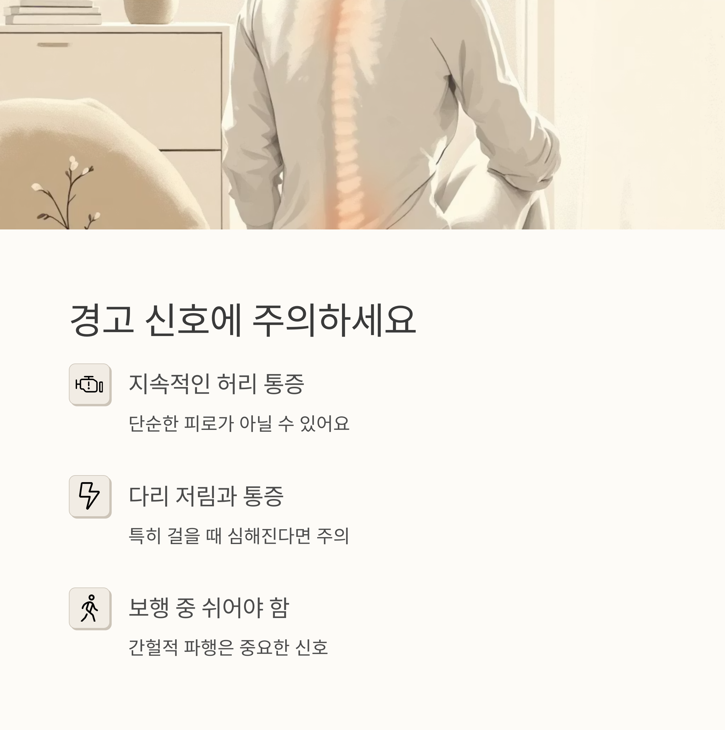 만약 허리 통증이 심하거나 다리가 저리고 힘이 빠지는 증상이 있다면, 가볍게 여기지 말고 병원에 방문하여 정확한 진단을 받아보는 것이 중요합니다. 혹시 평소 걷다가 쉬어야 하는 증상이 자주 나타나거나, 허리를 숙이면 통증이 조금 나아지는 경험이 있으신가요?
