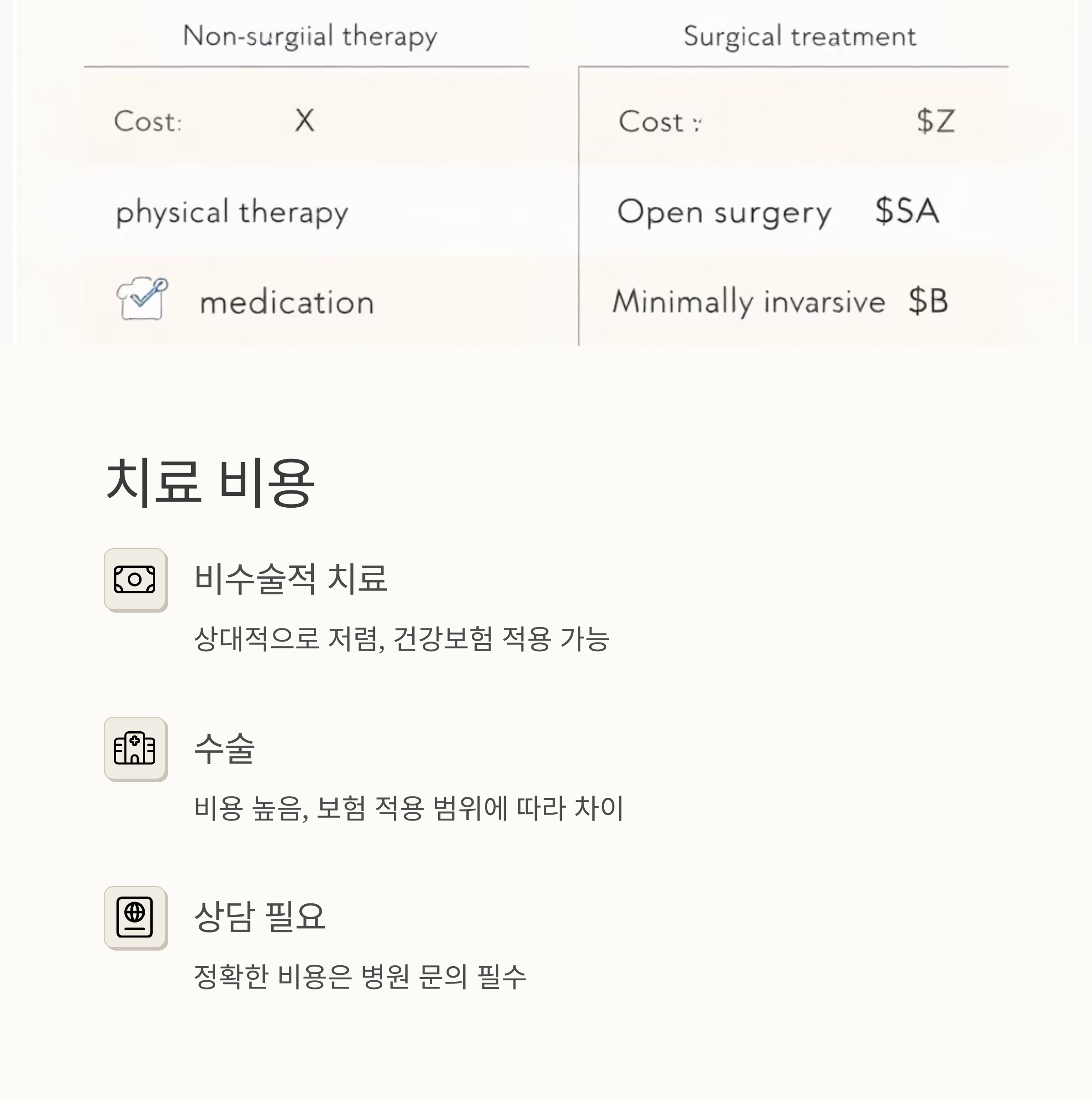 각 치료법의 장단점과 적용 대상을 의사와 충분히 상담하여 나에게 맞는 최적의 치료 계획을 세우는 것이 중요합니다. 그럼 척추협착증 치료에 드는 비용에 대해 알아볼까요?