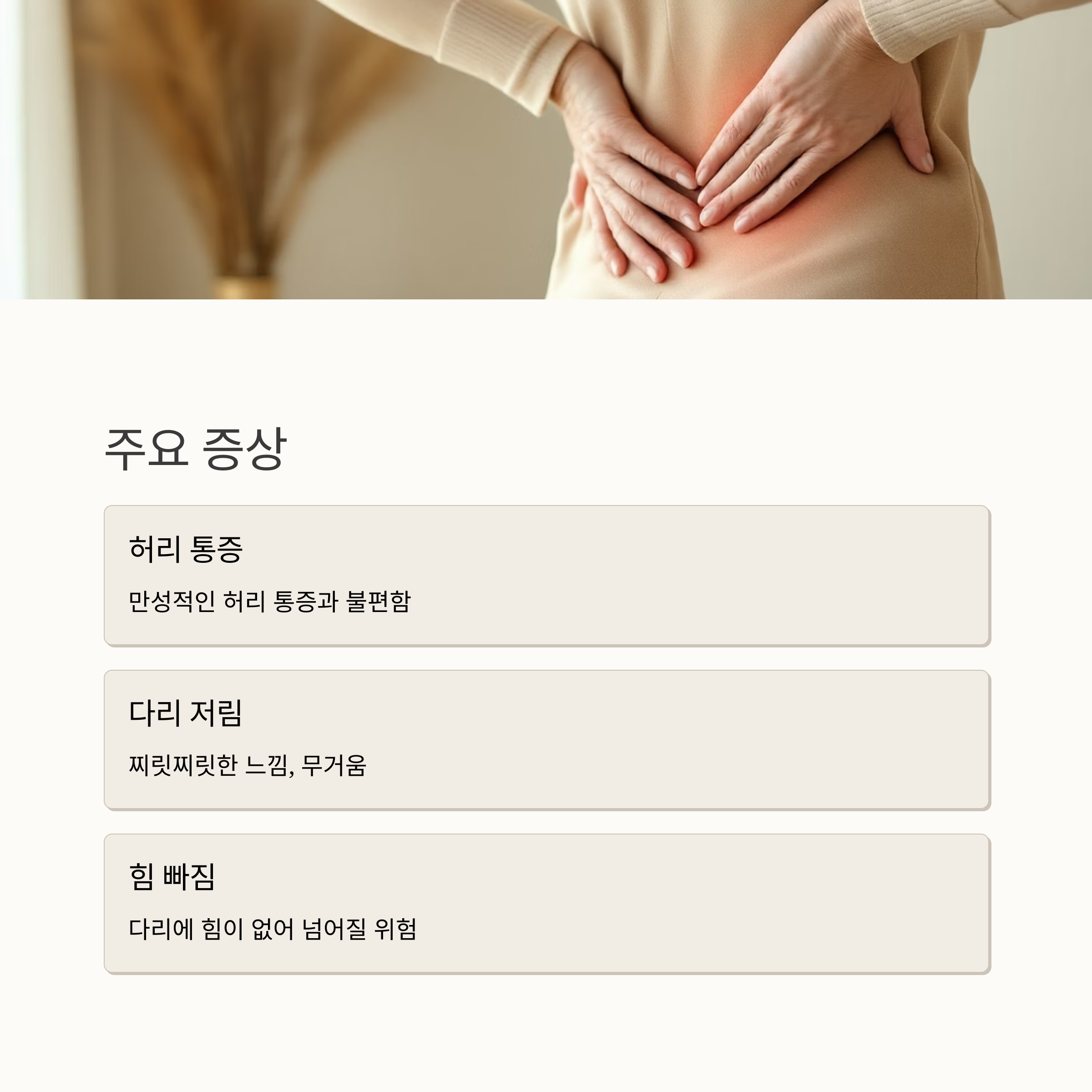 바로 허리 통증과 다리 저림, 그리고 힘 빠짐이에요. 마치 다리가 무겁게 느껴지거나, 찌릿찌릿한 느낌이 들기도 하죠. 이러한 증상들은 앉아 있거나 서 있을 때보다 걷거나 활동할 때 더욱 심해지는 경향이 있습니다.