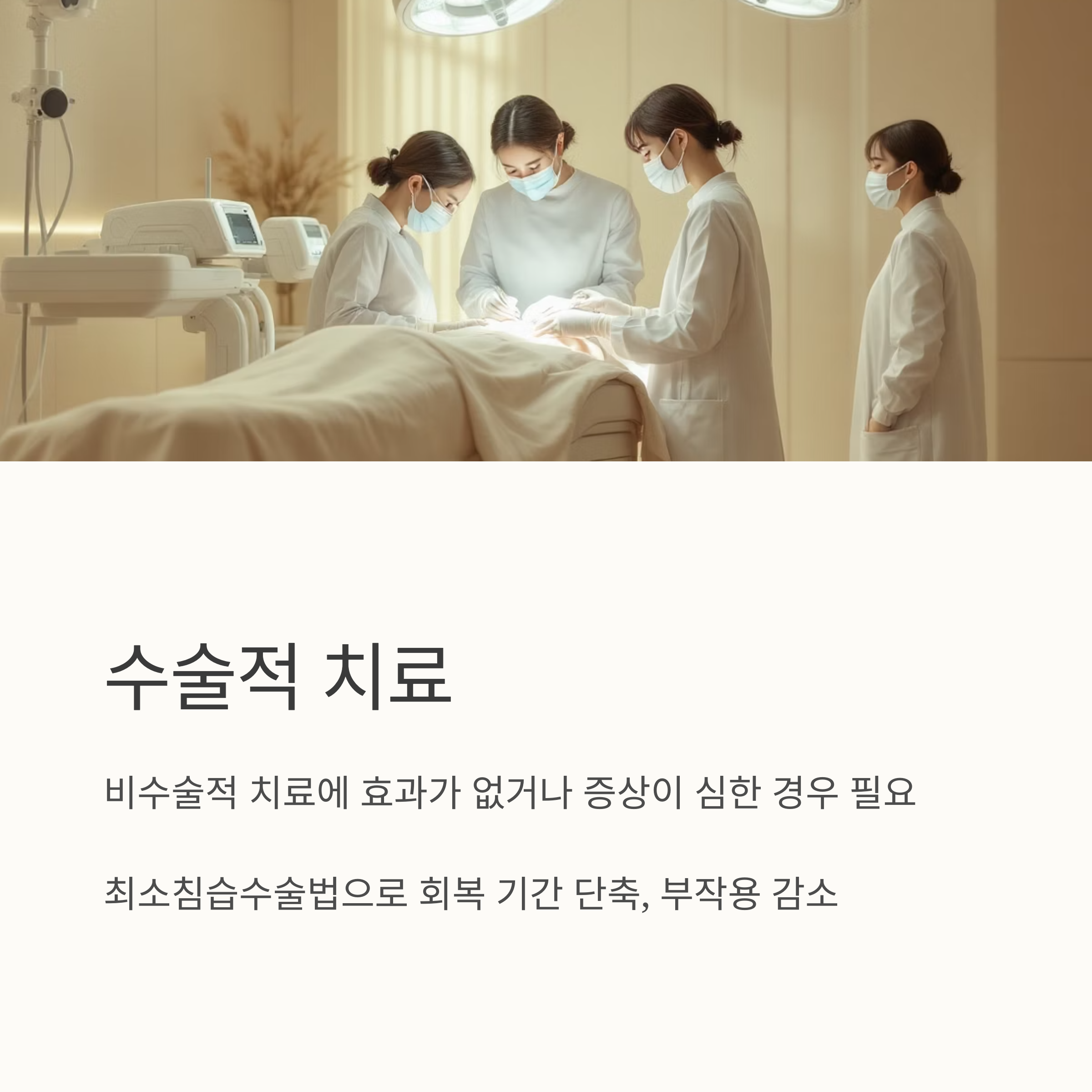 하지만 증상이 심하거나 비수술적 치료에도 효과가 없다면 수술이 필요할 수도 있습니다. 수술은 좁아진 척추관을 넓혀 신경을 압박에서 해방시켜 주는 방법입니다. 최근에는 최소침습수술법이 발전하여 회복 기간이 짧고 부작용이 적다는 장점이 있습니다.